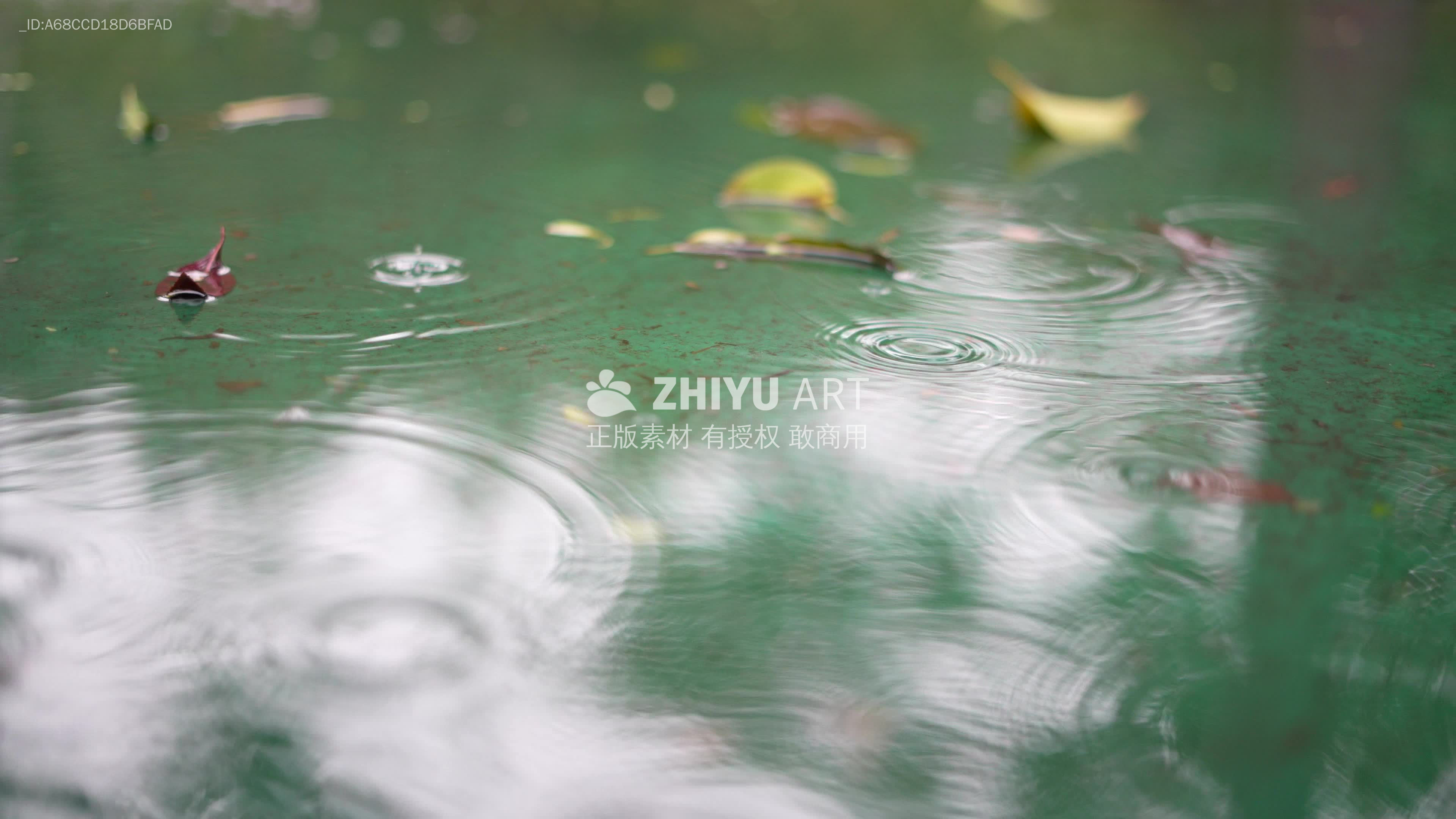 自然风光 城市建筑 下雨 人文 雨滴 水面 落叶 涟漪 绿色 宁静 自然 水域 水资源 倒影 池塘 湖泊 颜色 自然景观