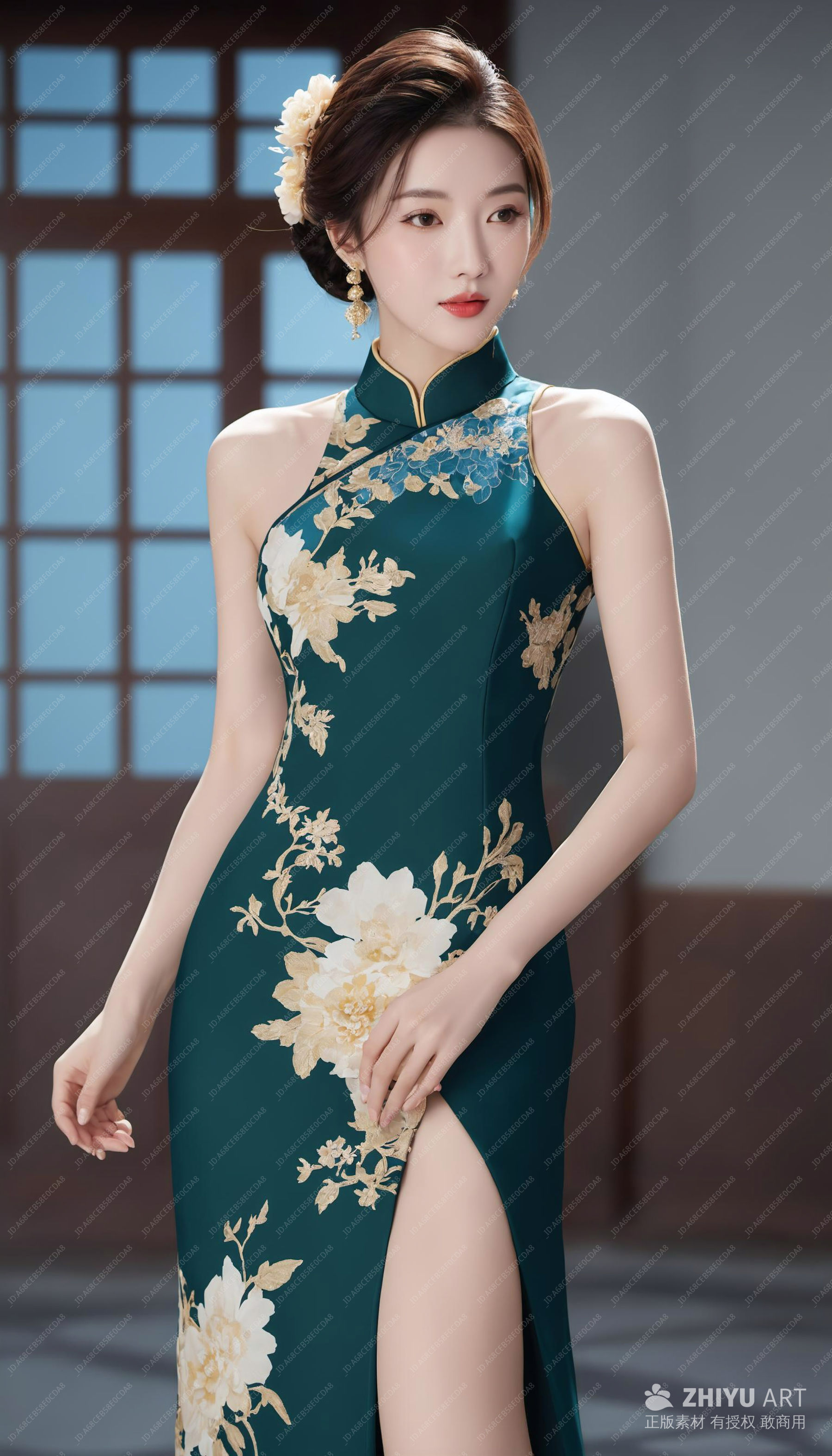 红花旗袍优雅女性