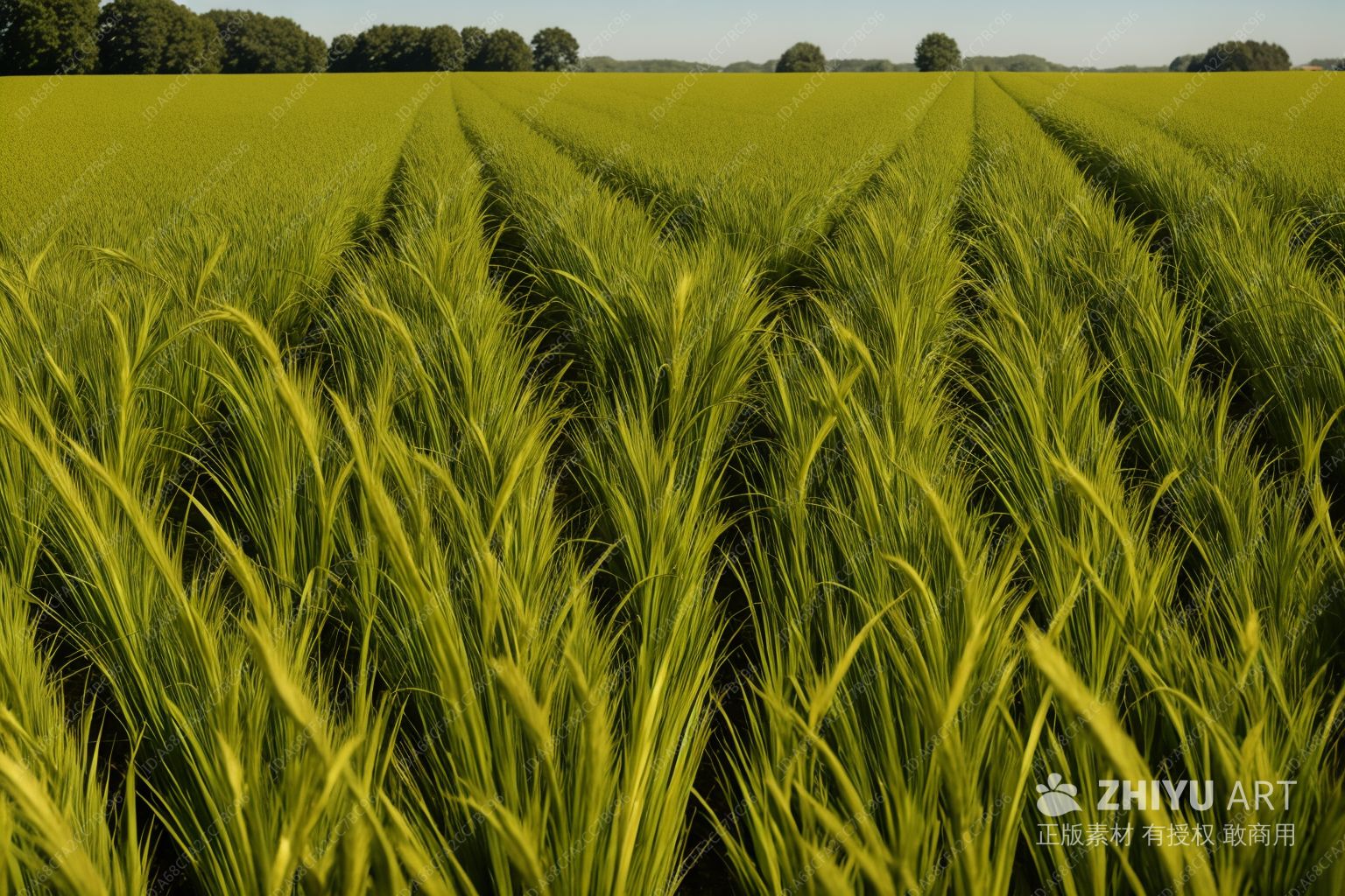 一片麦田,其中有高高的、干燥的草和秸秆。麦子呈现干