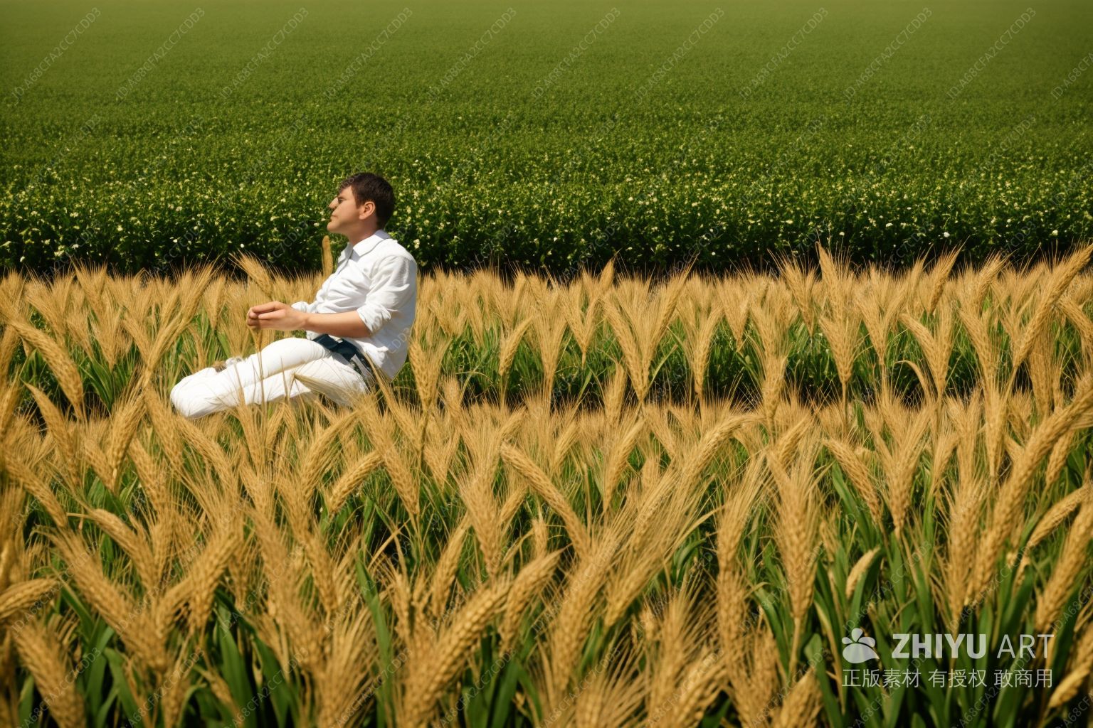 一个红发少年站在金色的田野中,他穿着白色的束腰外衣