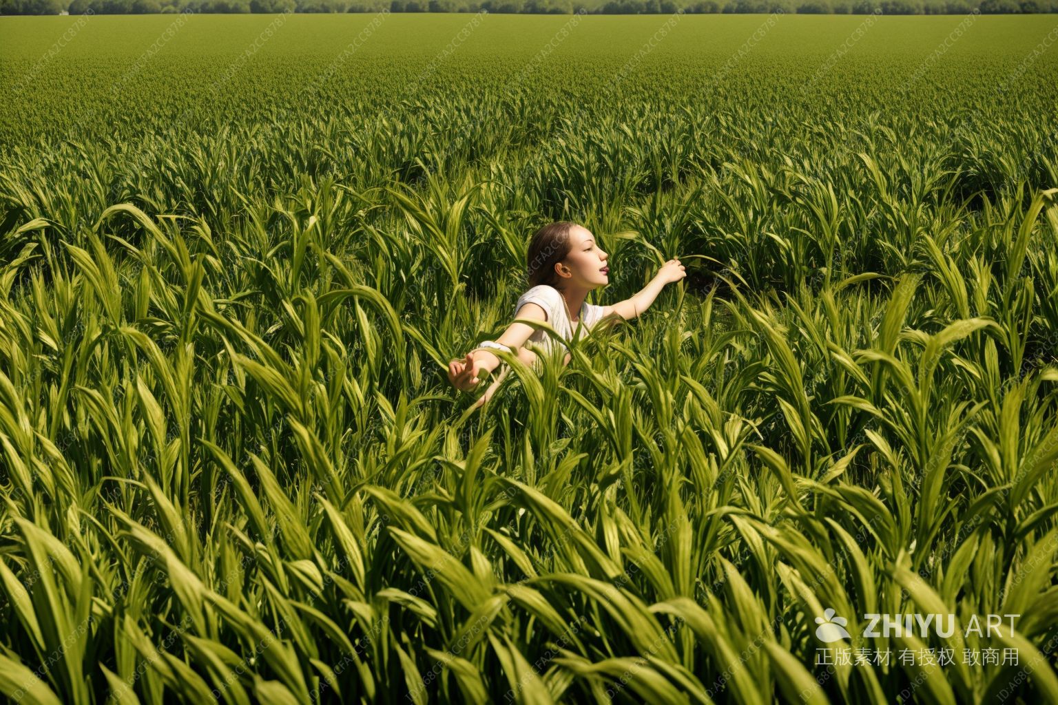 一个穿着白色连衣裙的女子站在田野里,她双手交叠放在