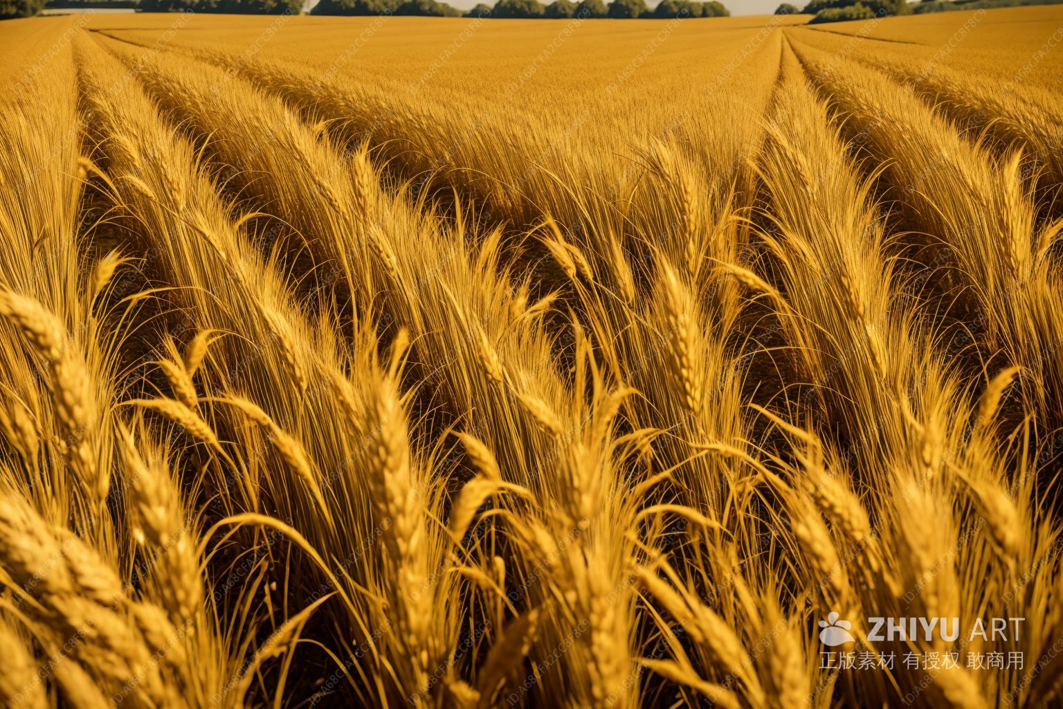大片金黄色的麦田,麦穗饱满,在阳光下轻轻摇曳。远处