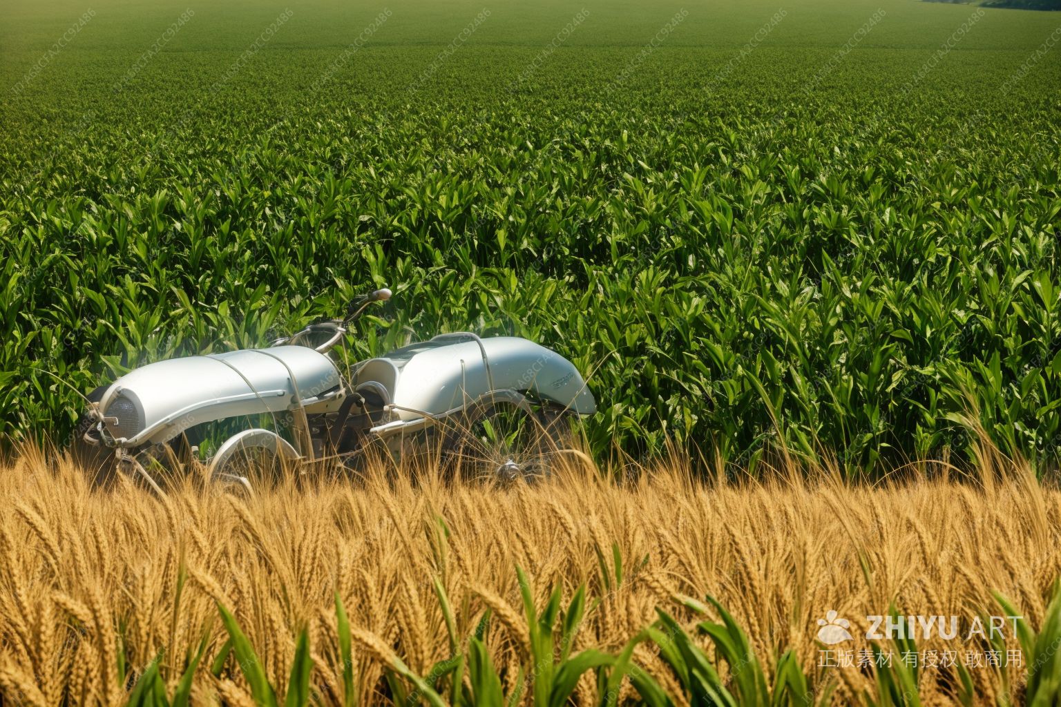 金色的麦田沐浴在日落时分的暖光中。麦穗在微风中轻轻