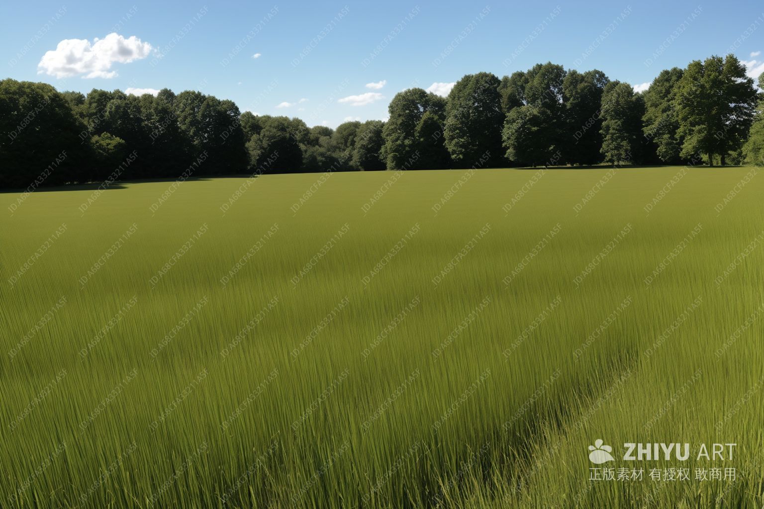 一片茂盛的绿色草地,周围环绕着一片茂密的森林,森林