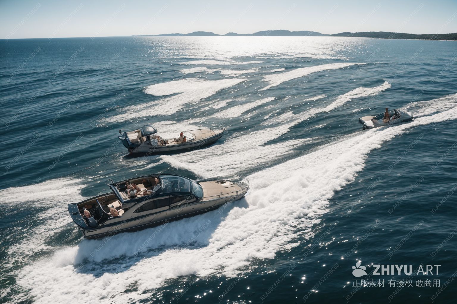 一艘未来感十足的2028年宝马游艇在清澈的海水中航