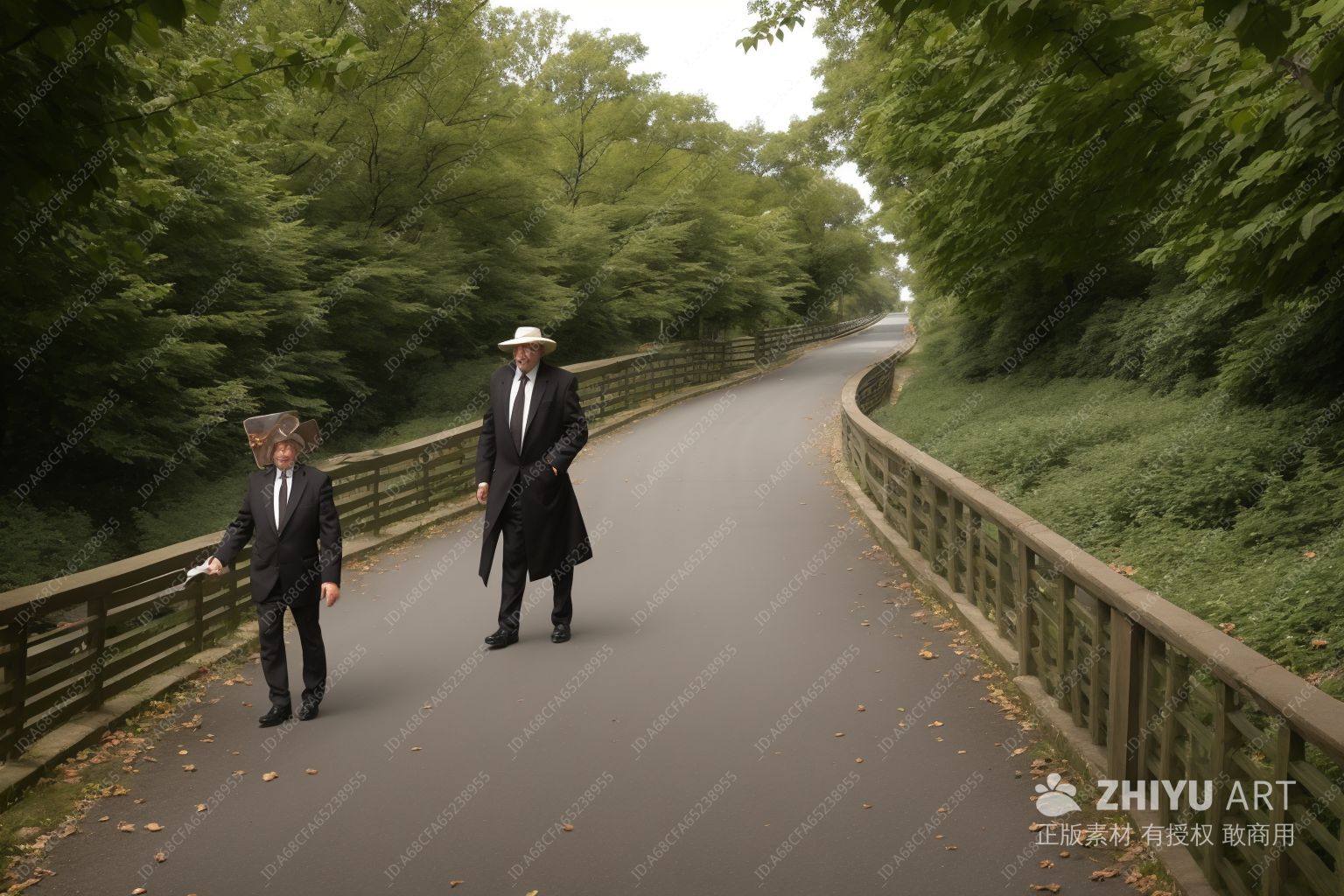 蜿蜒的道路被树木环绕,营造出一种深度感和宁静感。道