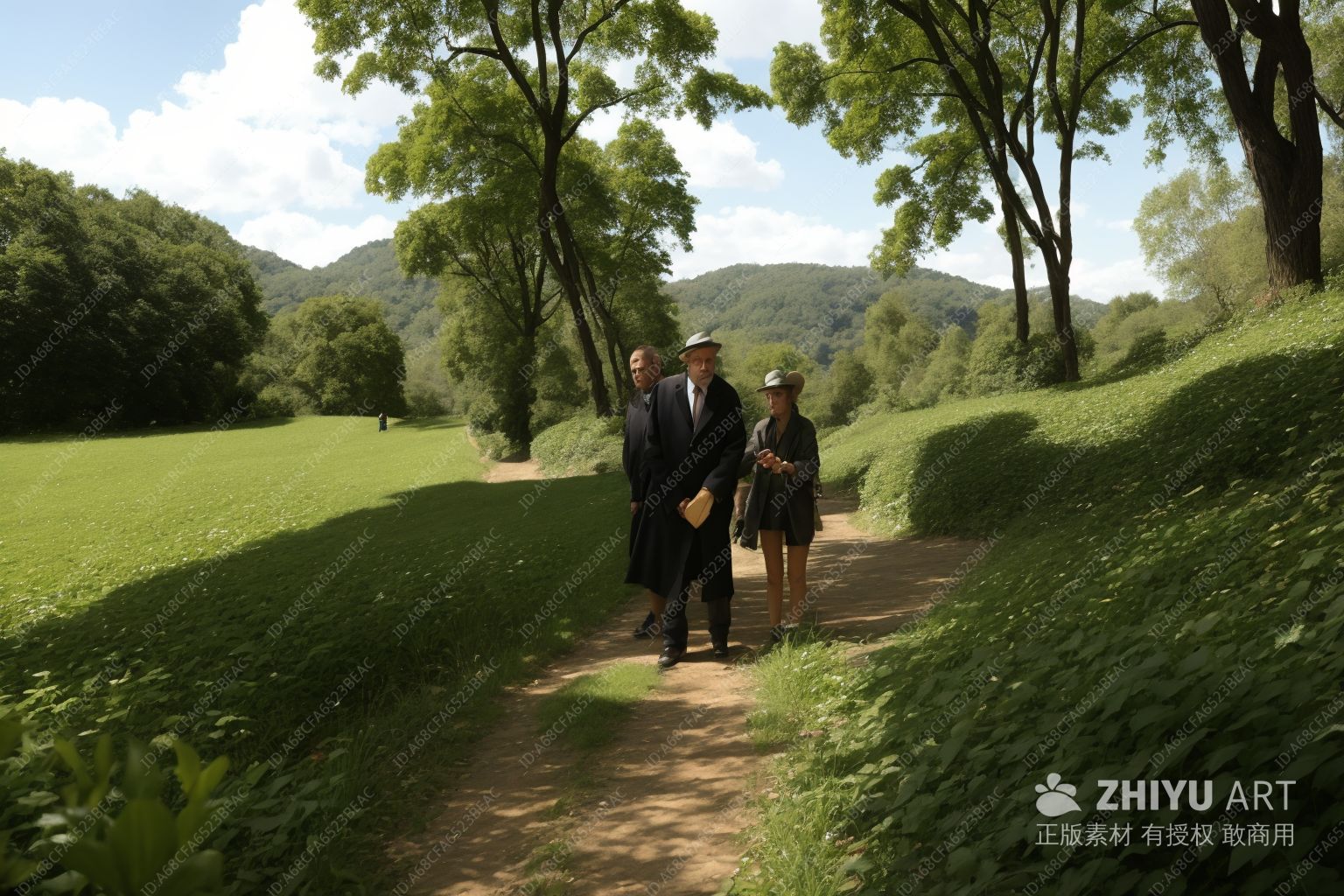 蜿蜒的道路被树木环绕,营造出一种深度感和宁静感。道