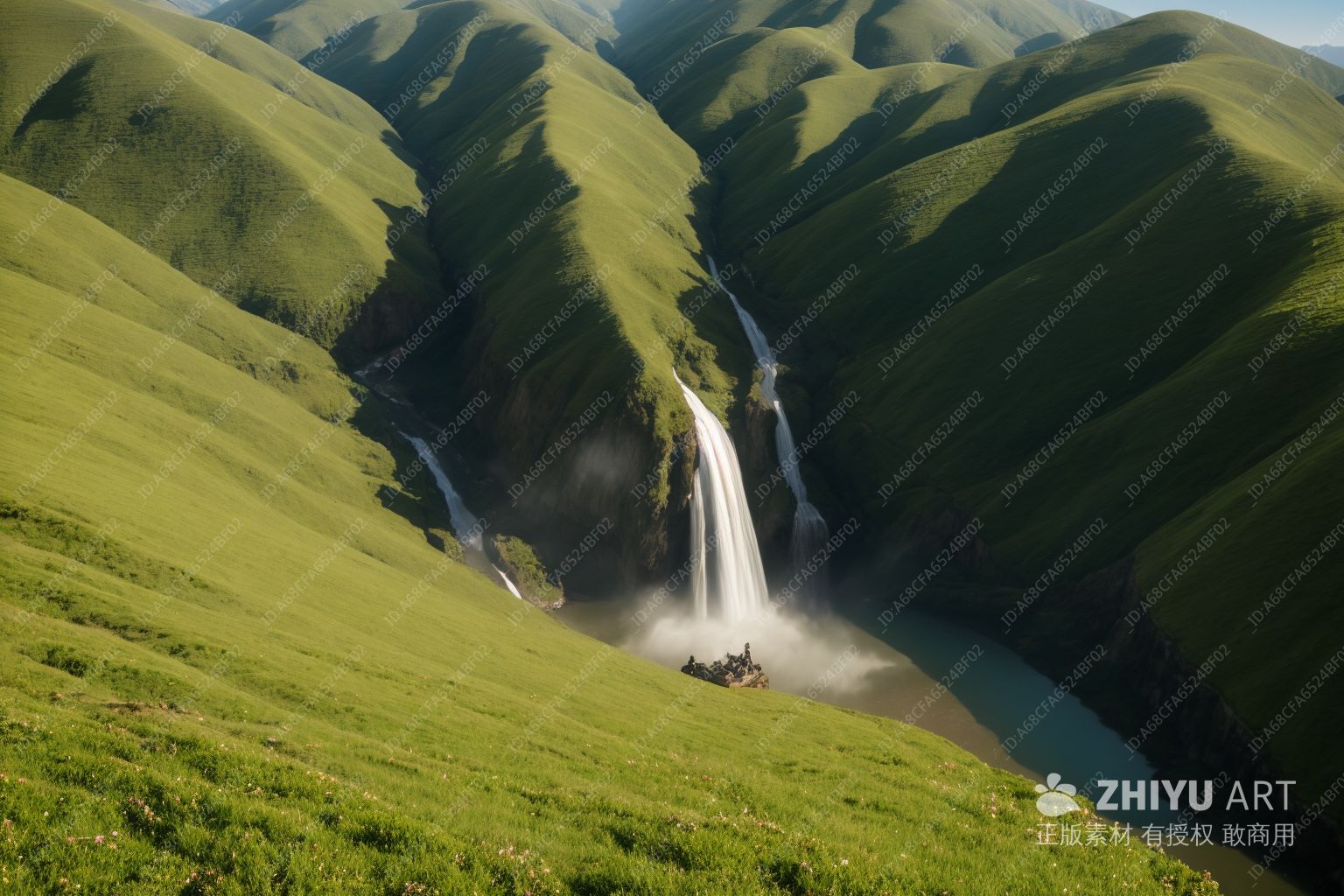 一条蜿蜒的道路被高耸的岩层包围,构成了一幅风景如画