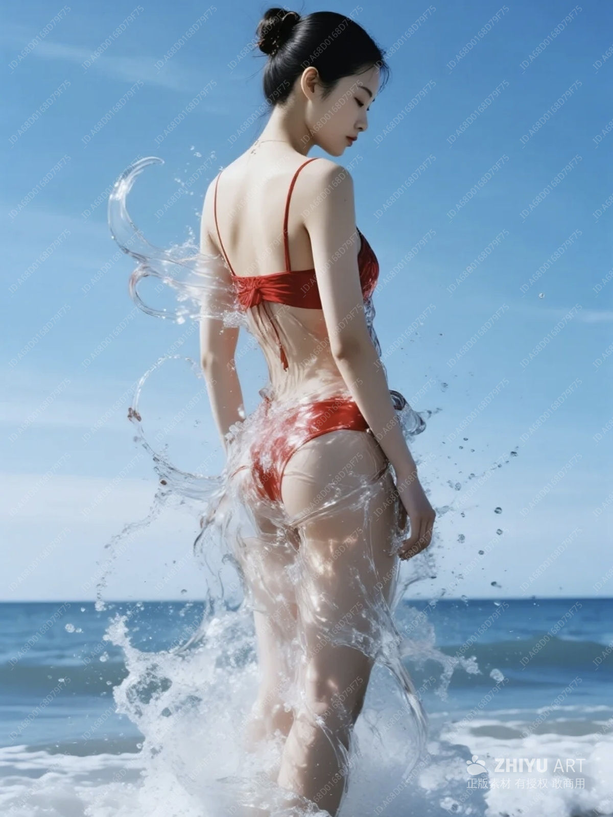 海滩红裙:水花中的夏日风情
