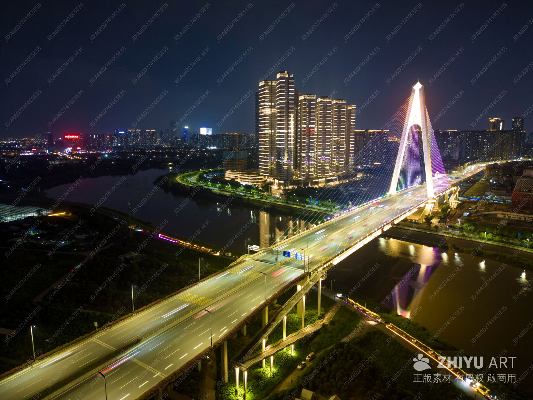 夜幕下的城市桥梁风光