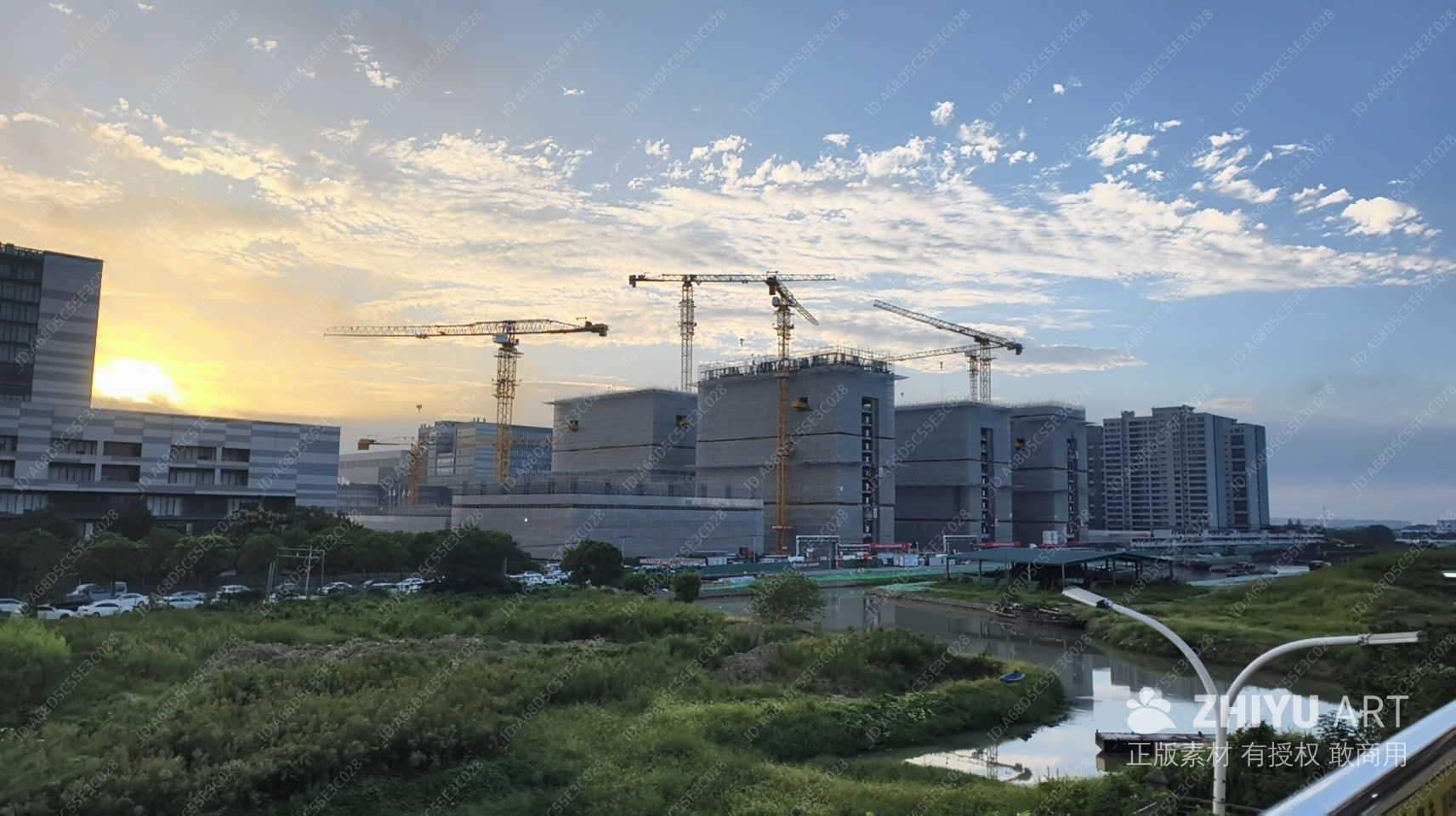 夕阳下的建设工地
