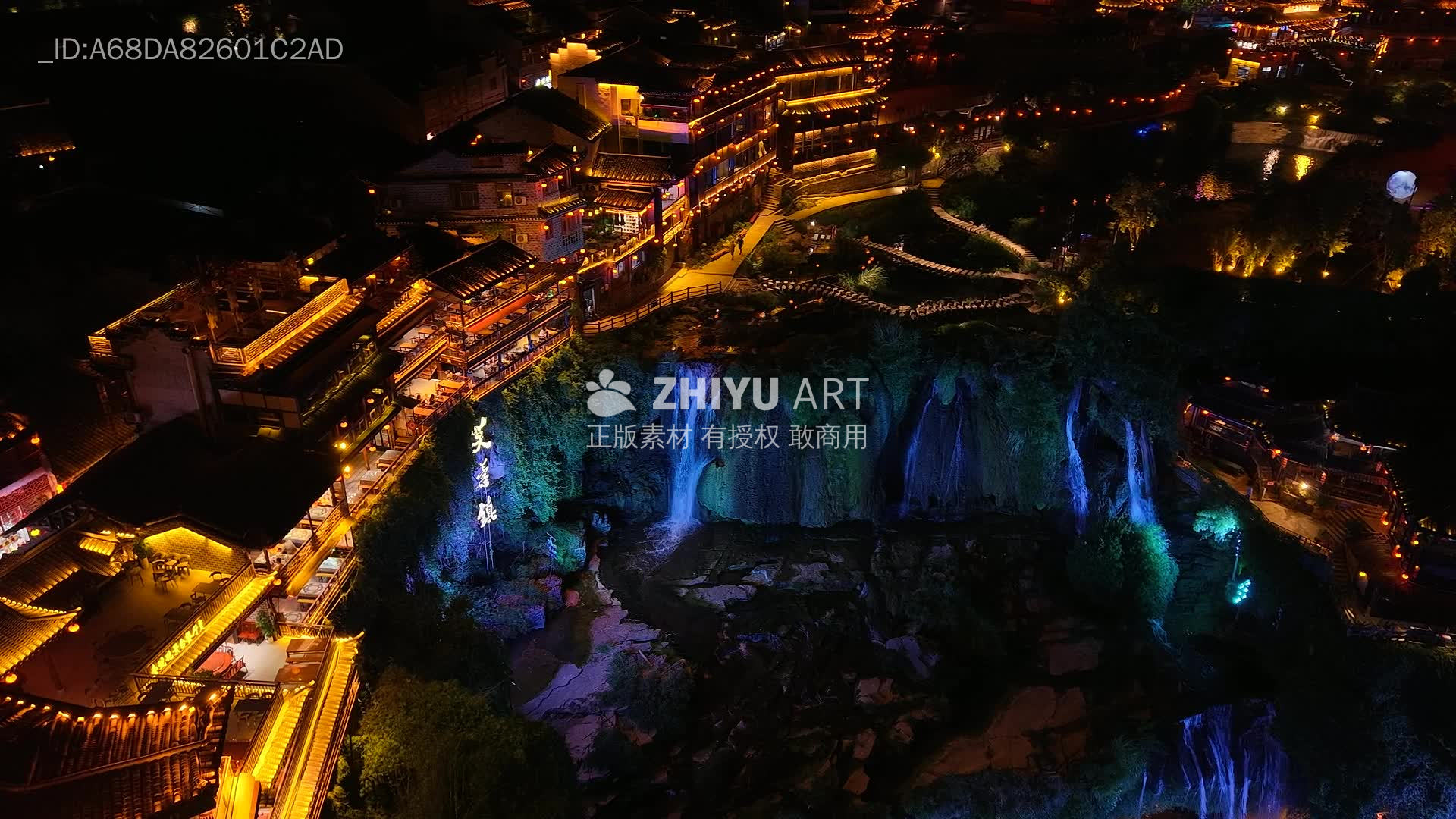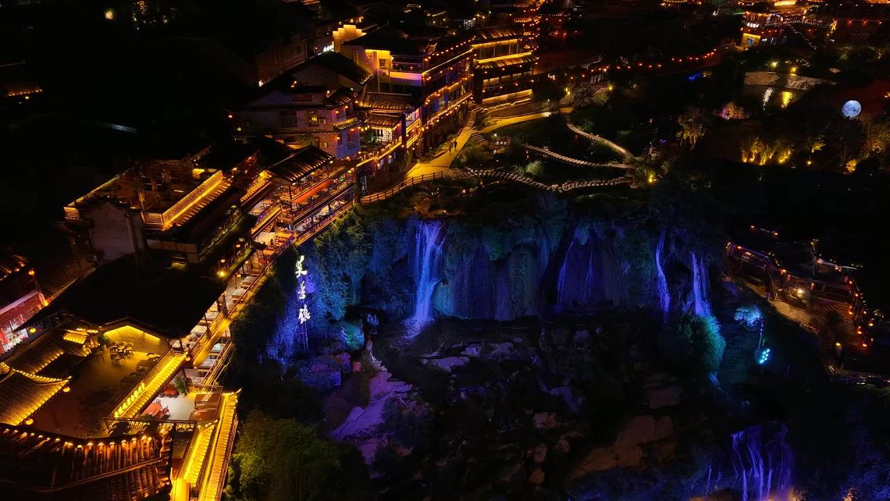 芙蓉镇 湖南 边城 小镇 瀑布 夜景 古城 湘西 旅游景区 古色古香 中国风 古风 航拍 灯光 建筑 色彩 城市 旅游 浪漫 夜晚 都市区 自然景观