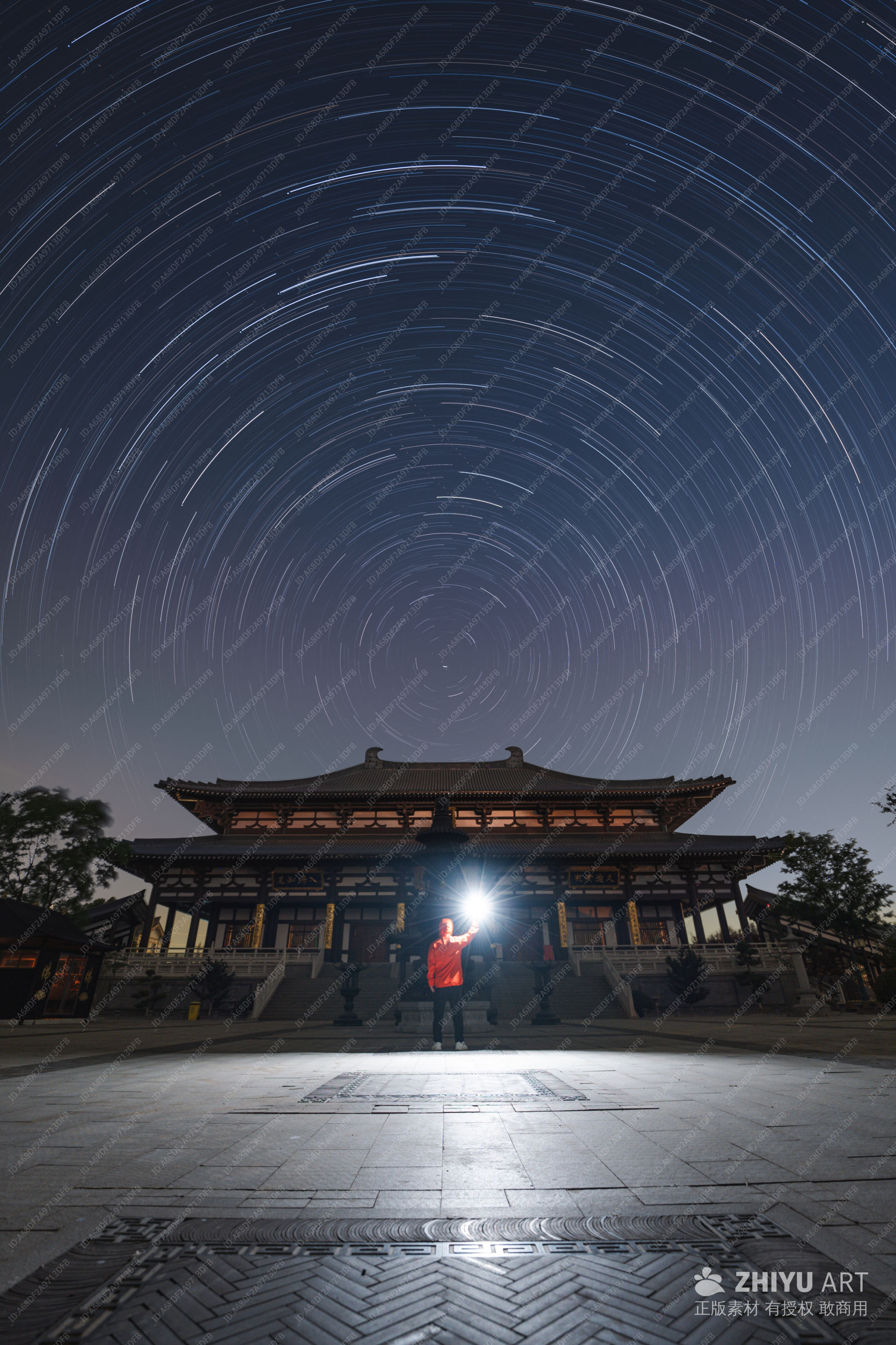 星空下的古寺夜景