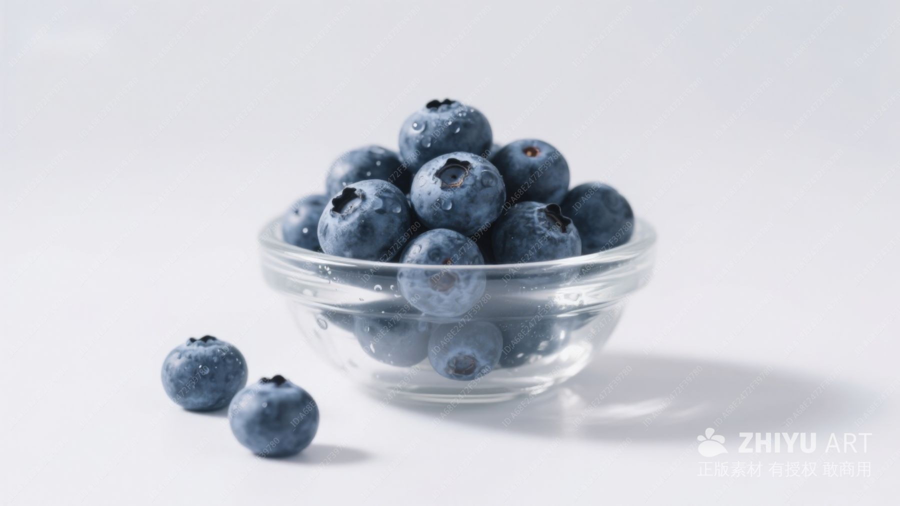 蓝莓盛于透明碗中,清新自然