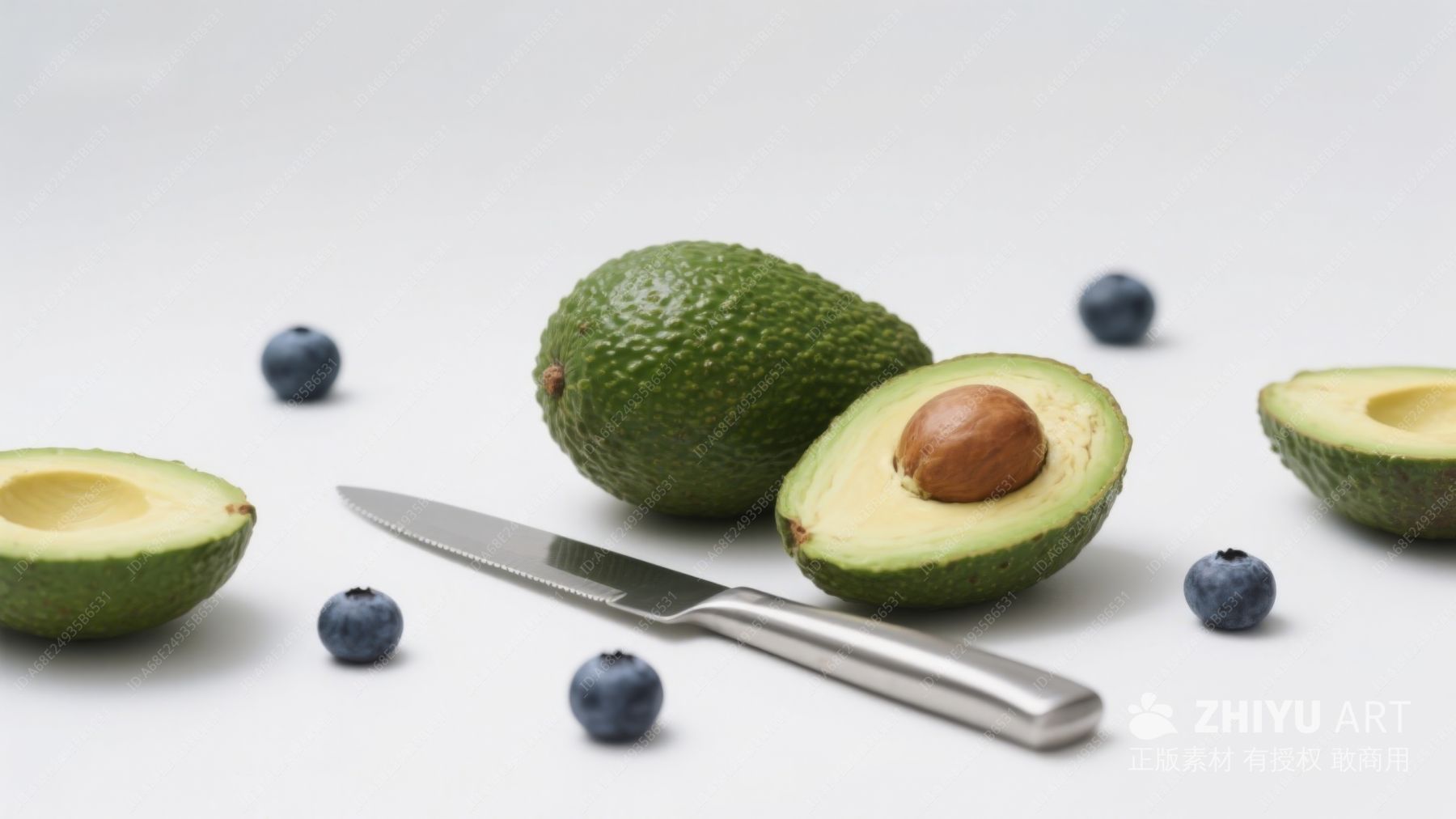 切开的牛油果与蓝莓环绕 362
