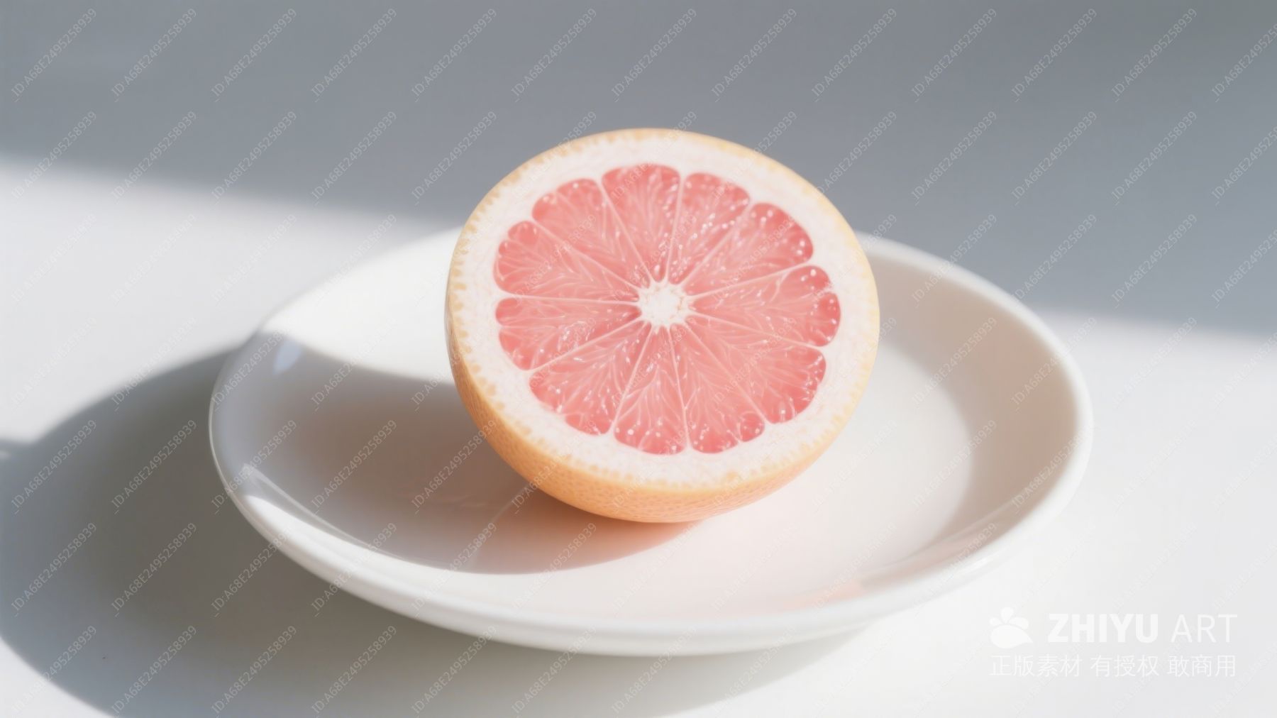 切开的葡萄柚,展示鲜艳红色果肉 373