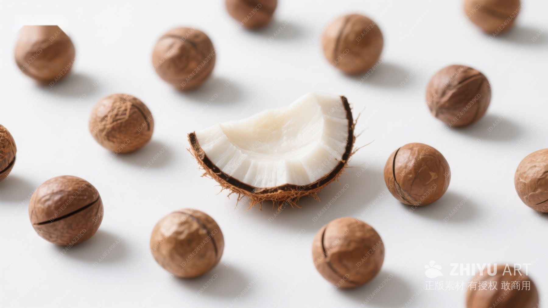 椰子食品水果热带坚果白棕色外壳健康异国情调甜破碎一半光明
