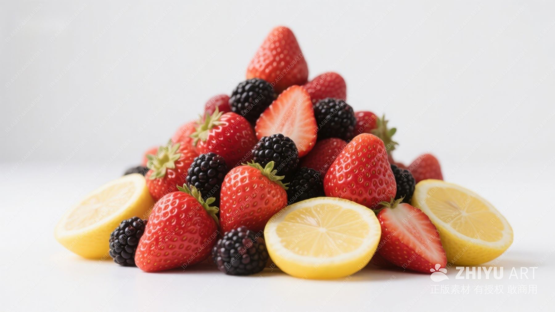 新鲜水果组合:牛油果、草莓、蓝莓和柠檬 1030