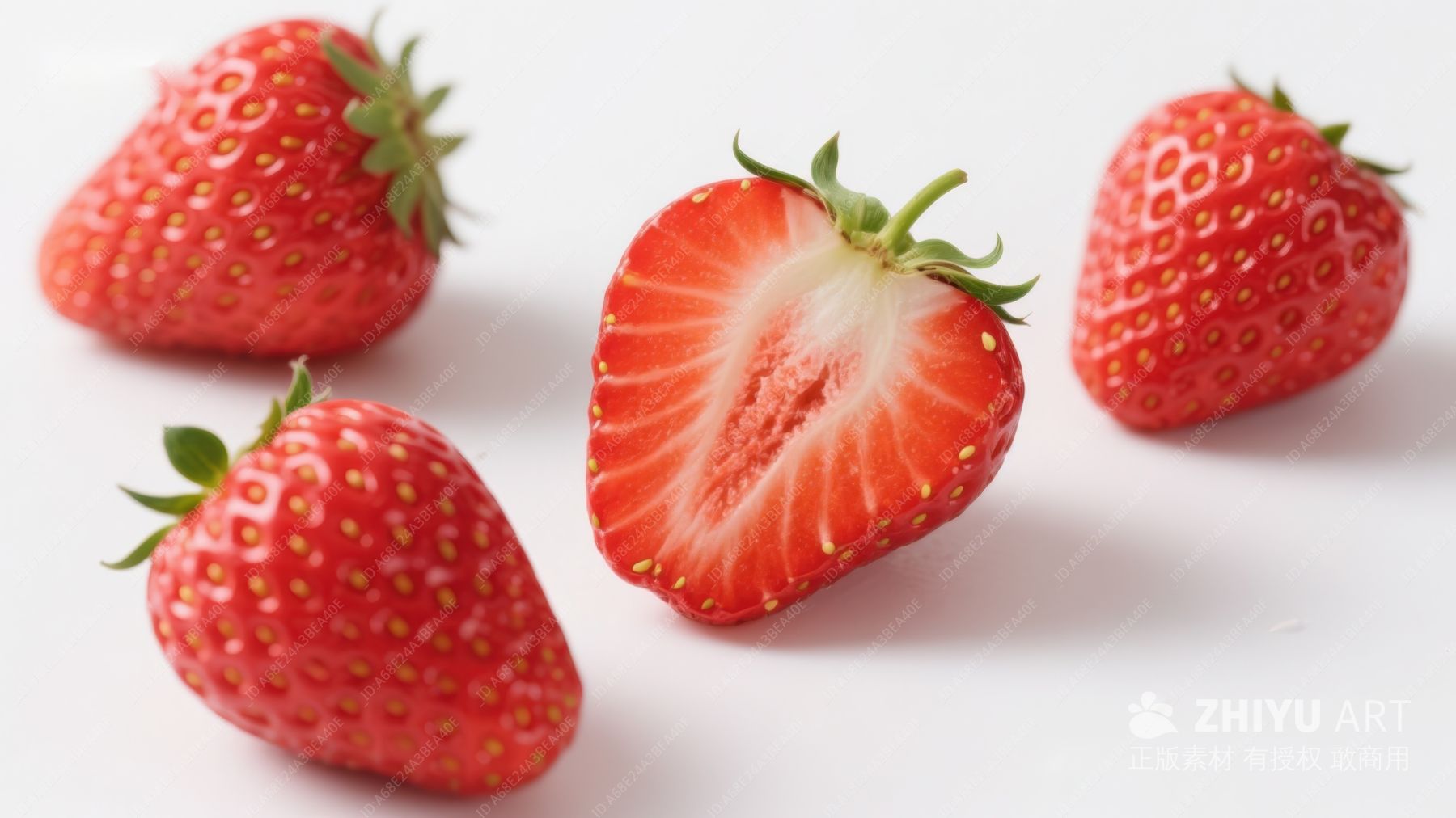 新鲜草莓特写,一颗切半展示内部 534