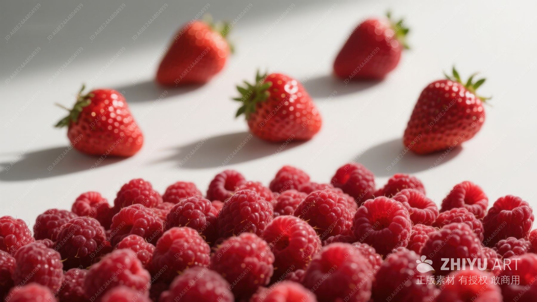 新鲜草莓、覆盆子与黑莓的静物展示 488