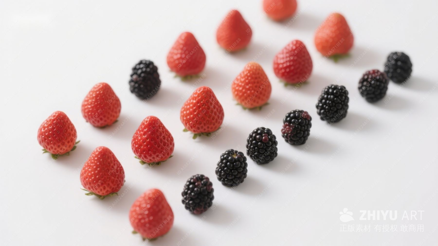 新鲜草莓与黑莓的排列展示 552
