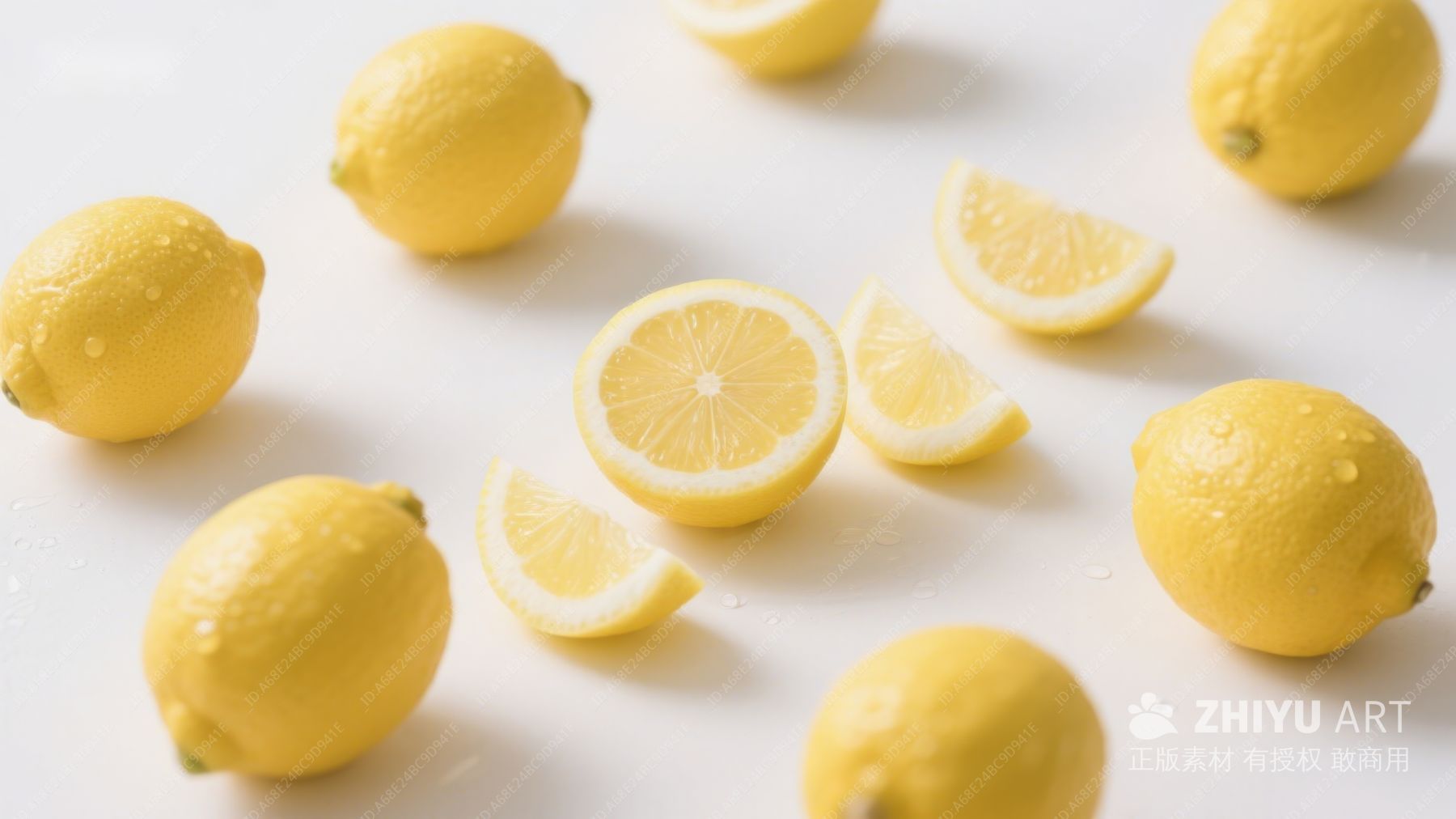 新鲜柠檬散落桌面 798