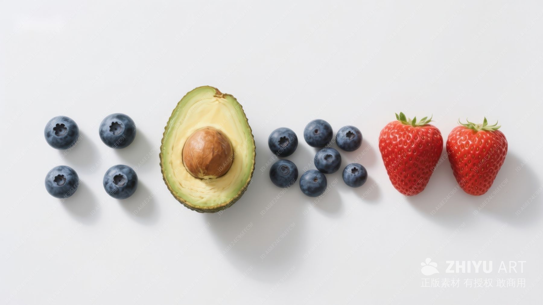 新鲜水果组合:牛油果、草莓与蓝莓 1032
