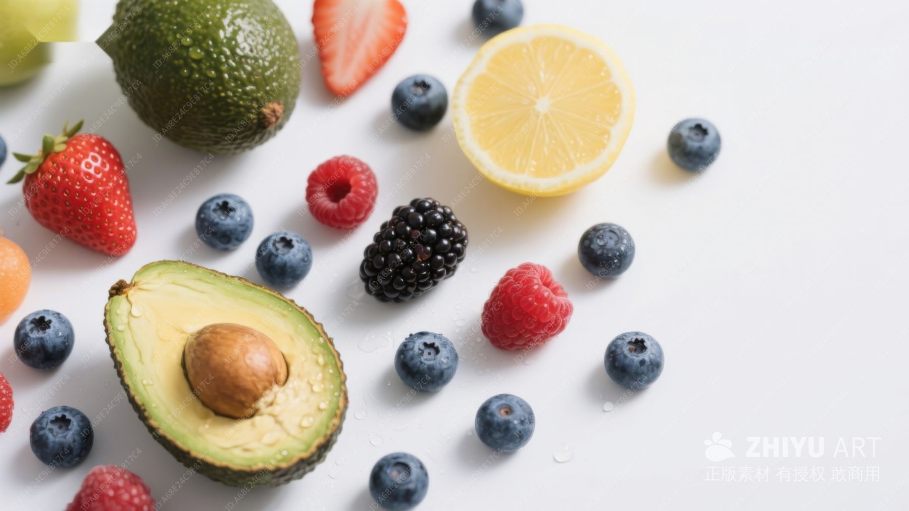新鲜水果拼盘:牛油果、蓝莓、草莓与柠檬 944