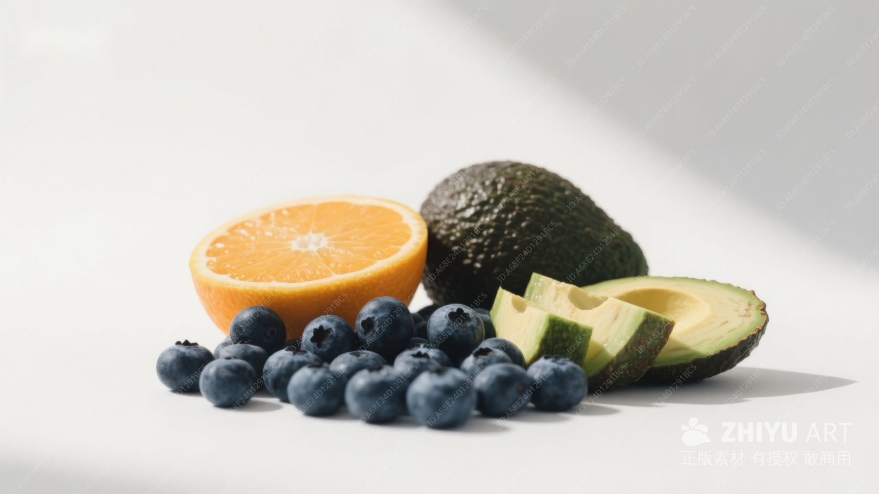 新鲜水果组合:橙子、蓝莓与牛油果 1016
