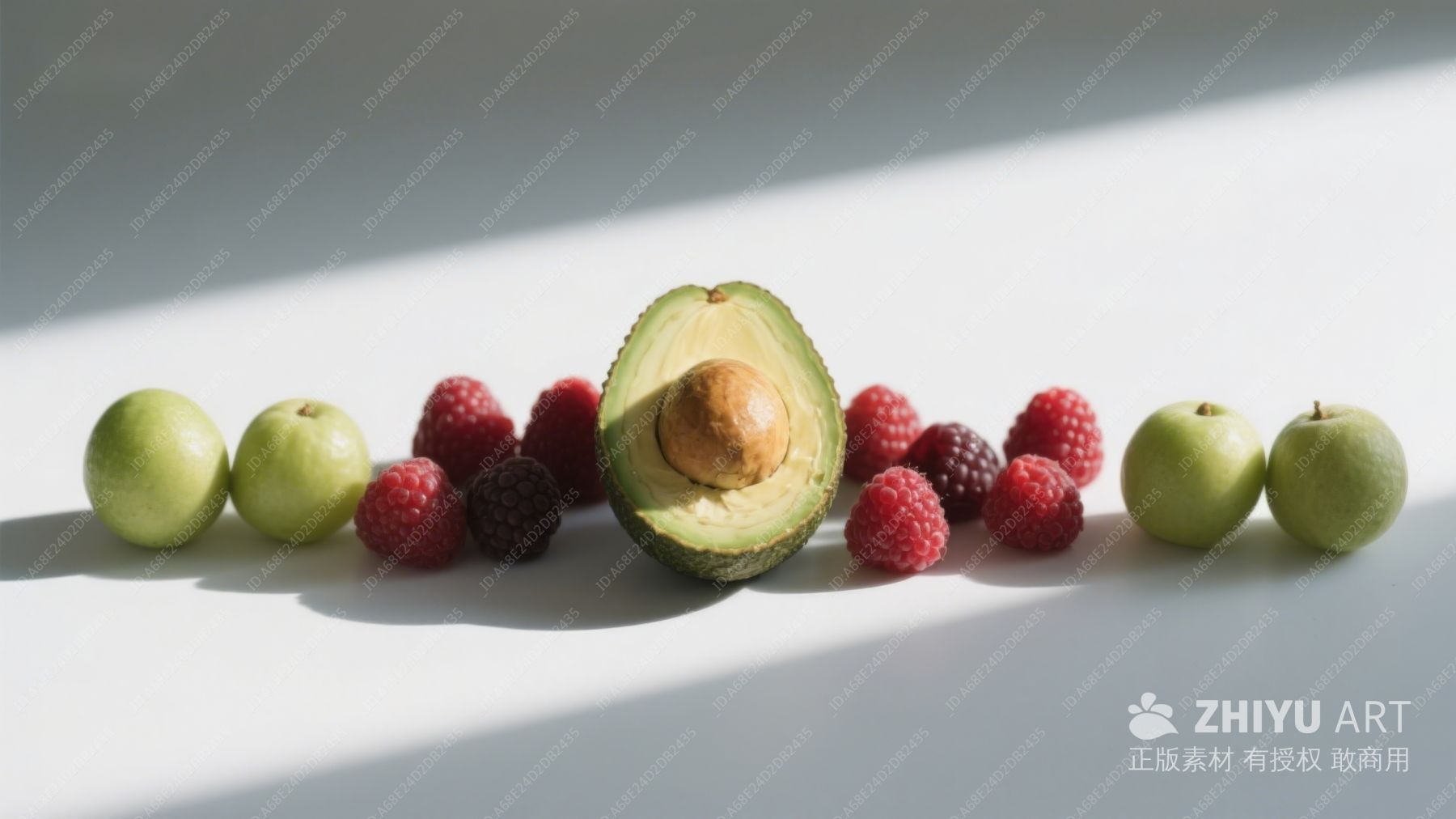 新鲜水果组合:牛油果、覆盆子与青苹果 1034