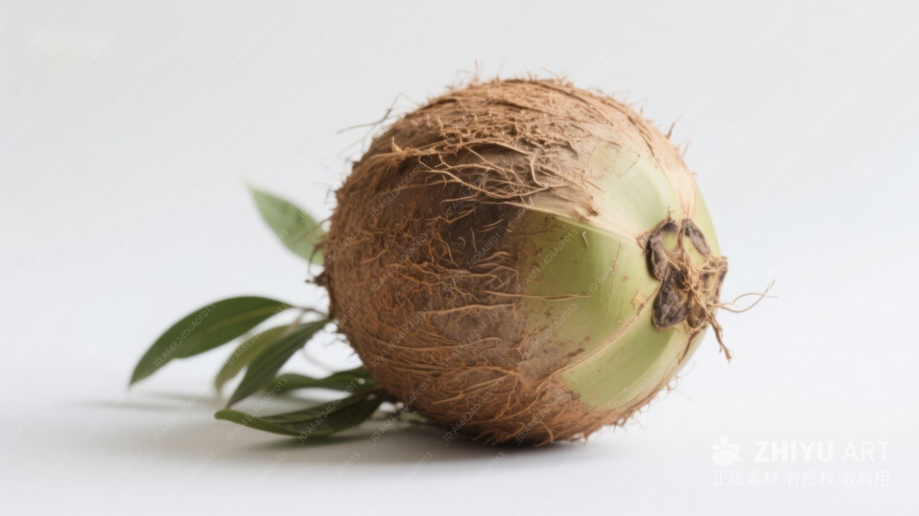 新鲜椰子与绿叶的静物图 1074
