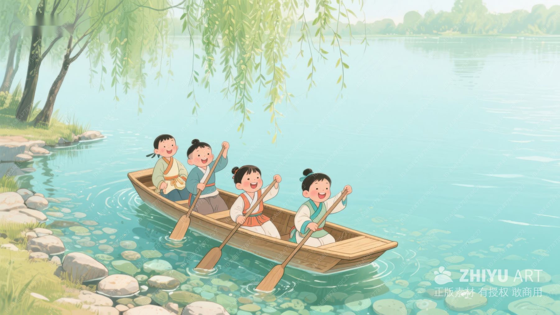 孩子们在湖上划船的欢乐时光 170
