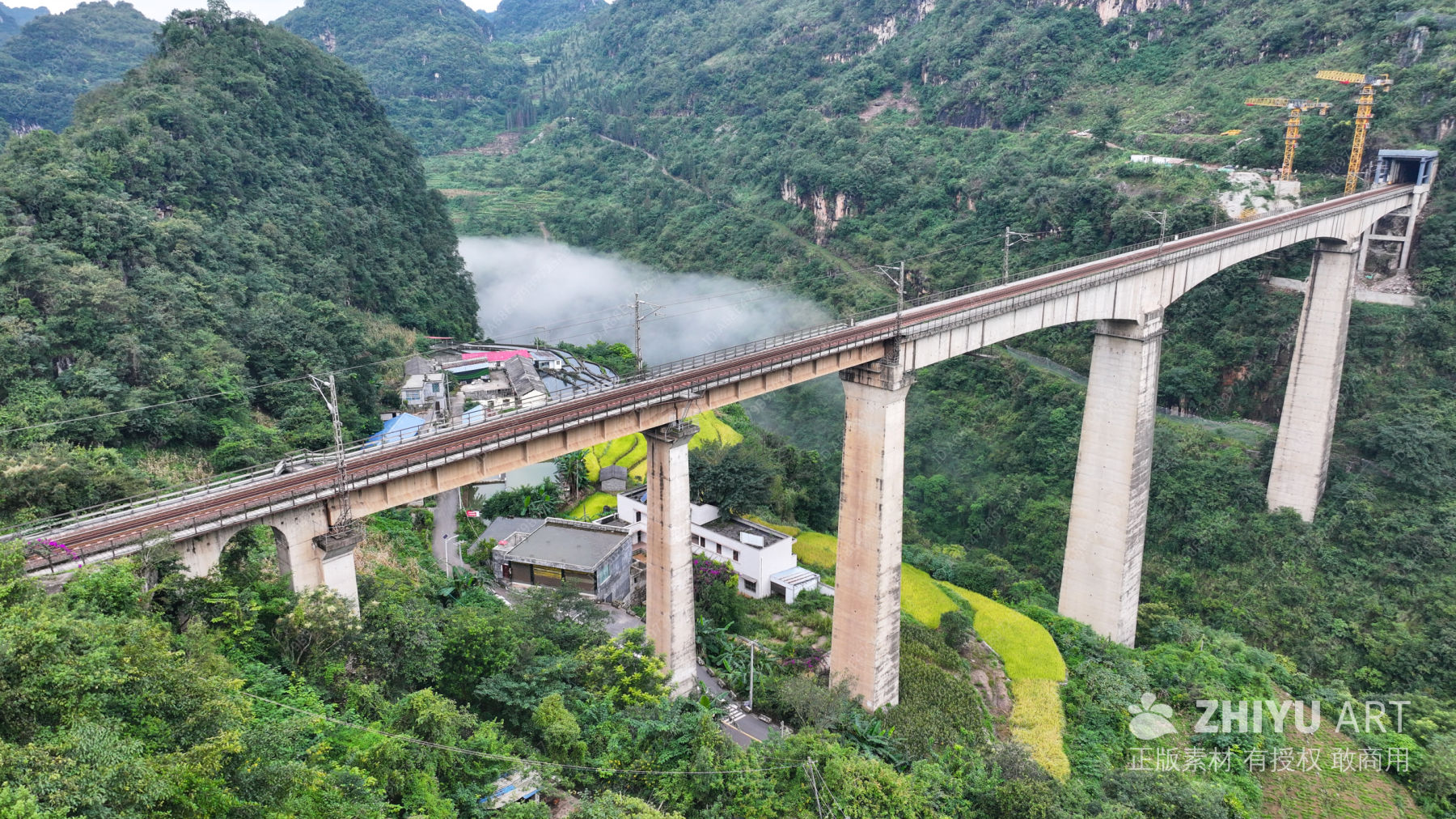 绿色山水间的桥梁奇观