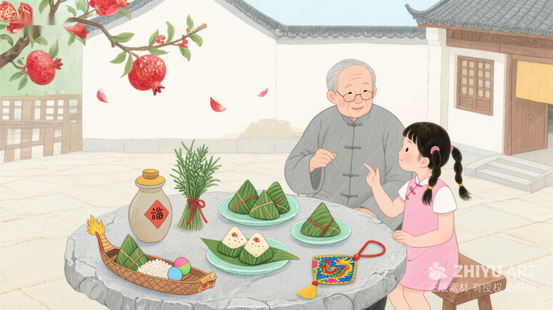 老人包粽子,端午节温馨场景 222