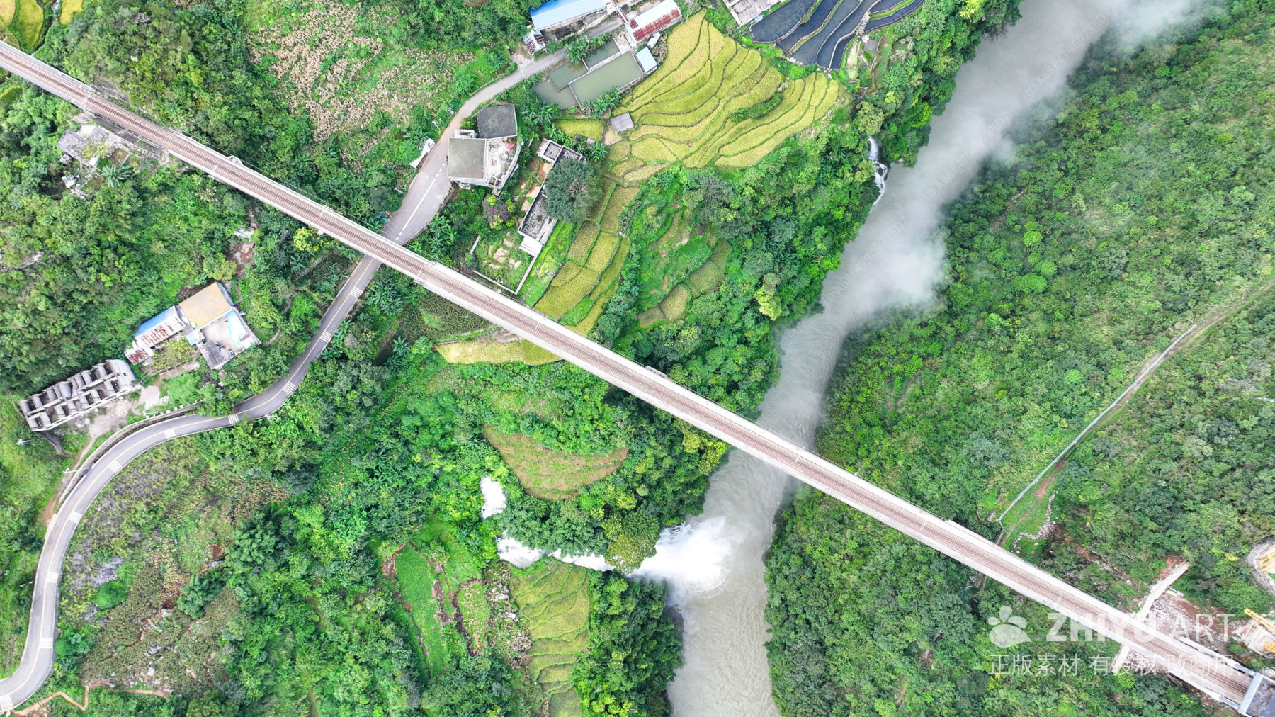 航拍铁路火车桥梁 峡谷瀑布 9
