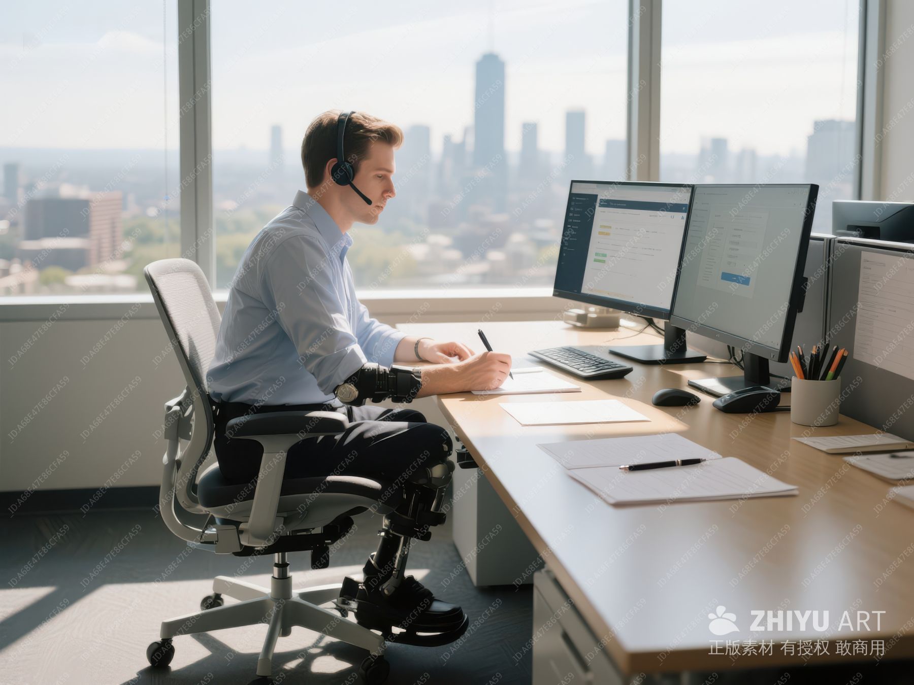 轮椅员工在办公室使用电脑工作 255