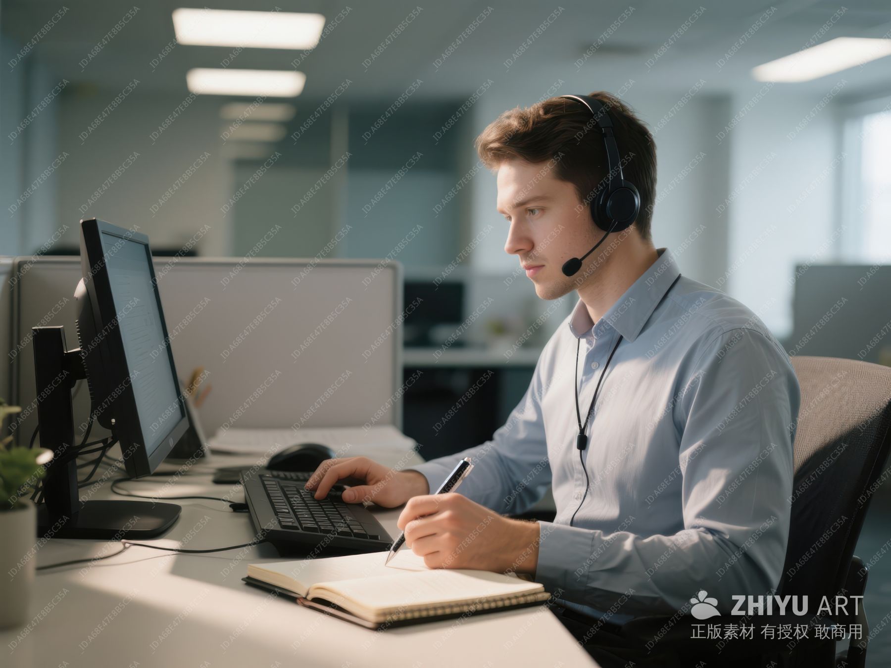 办公室职员佩戴耳机使用电脑工作 90