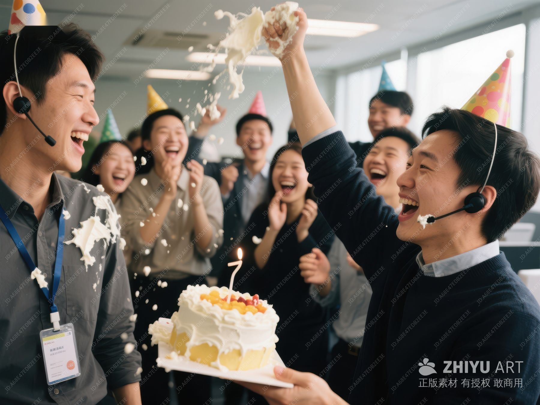 办公室庆祝时刻,同事共享蛋糕 81