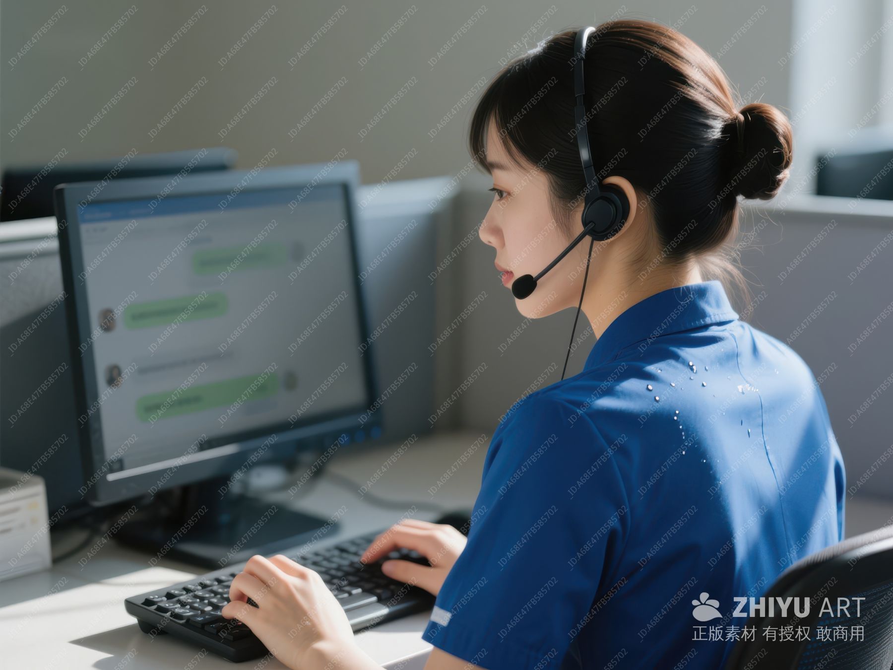 客服人员正在使用电话和电脑工作 223
