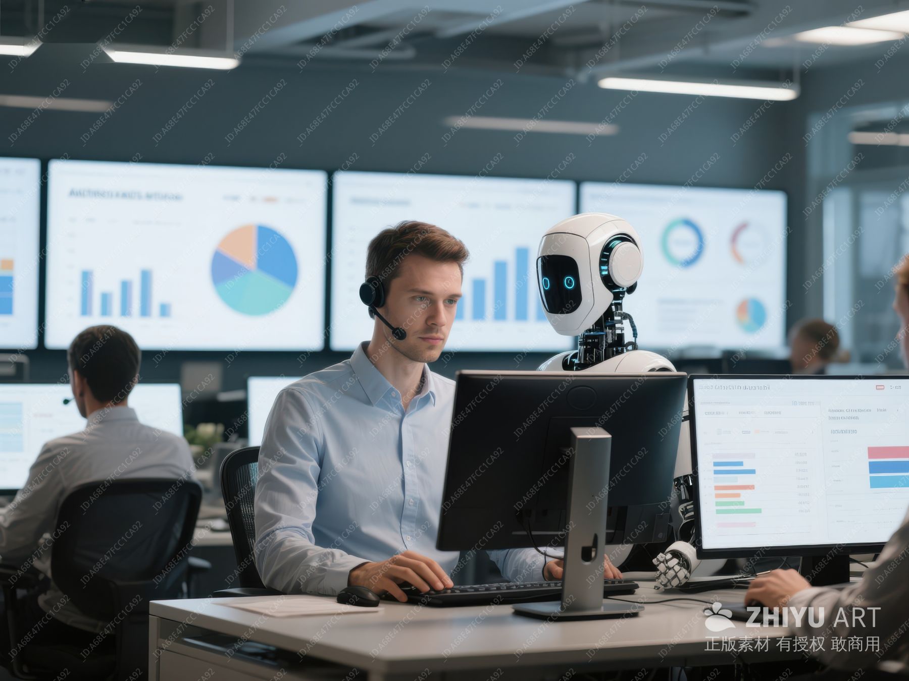 呼叫中心员工在电脑前工作 150