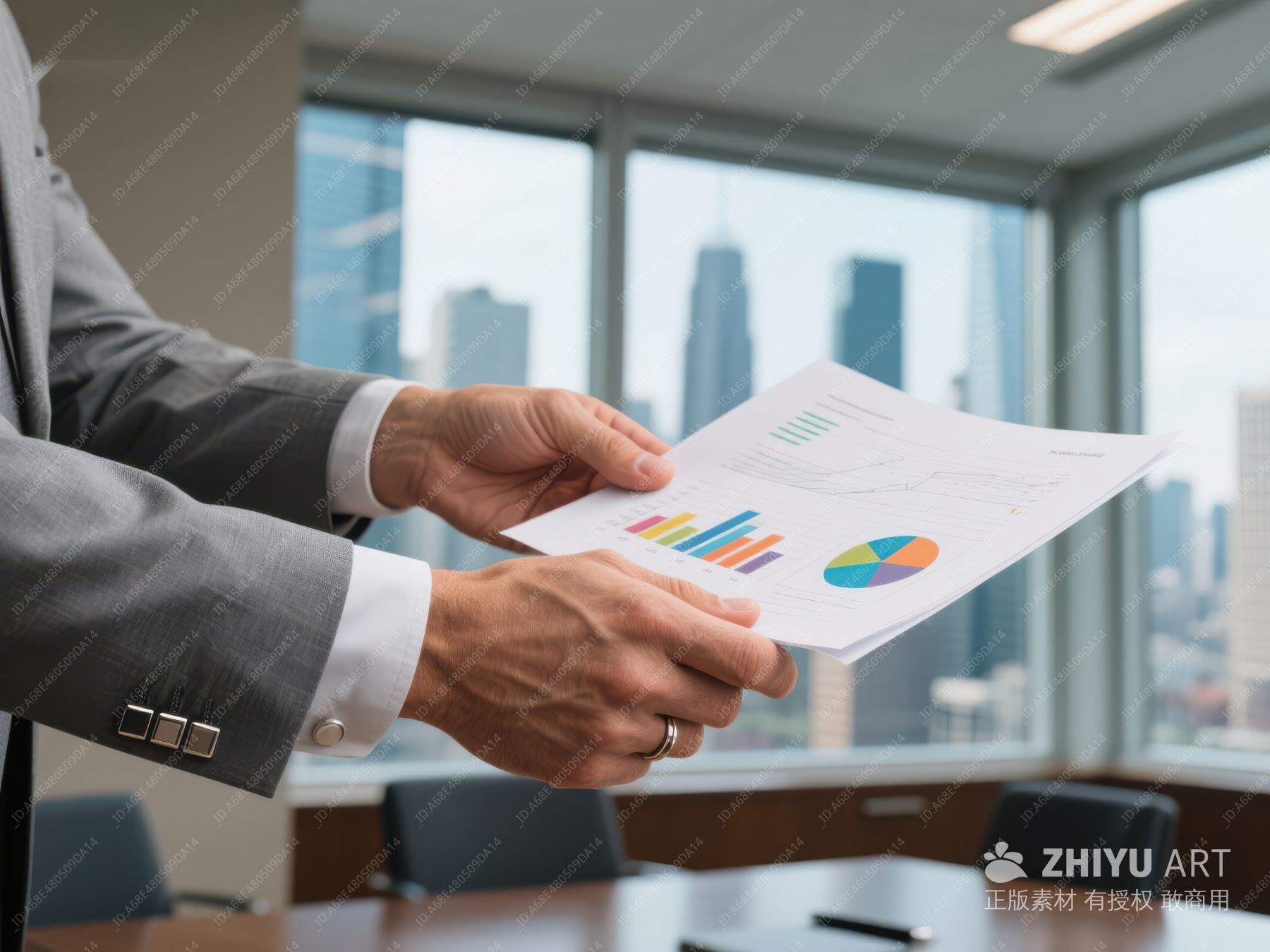 一位身穿时髦西装的专业商务人士,手捧一个发光的3D