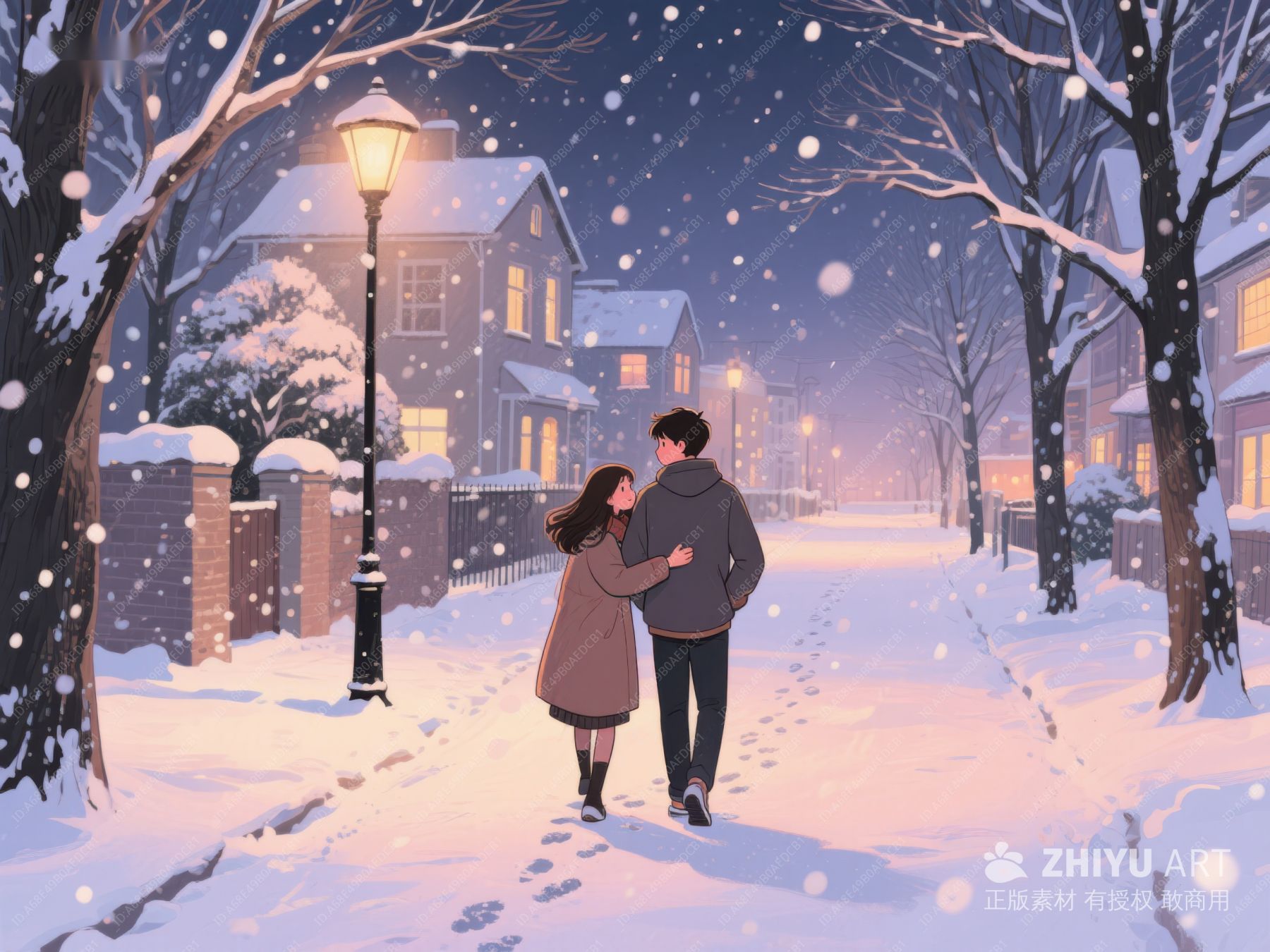 冬夜漫步的情侣 146