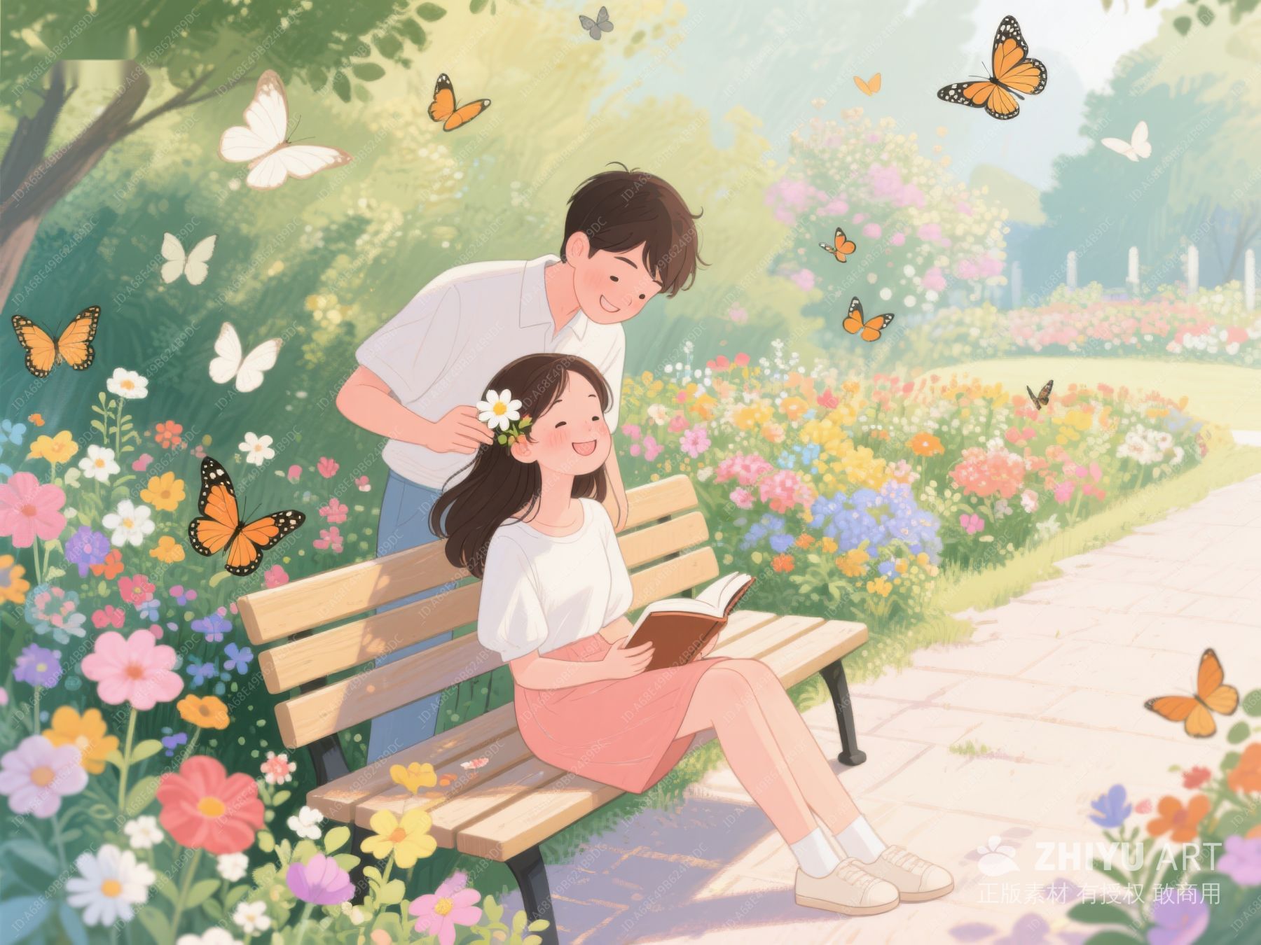 公园长椅上阅读与嬉戏的温馨时刻 188