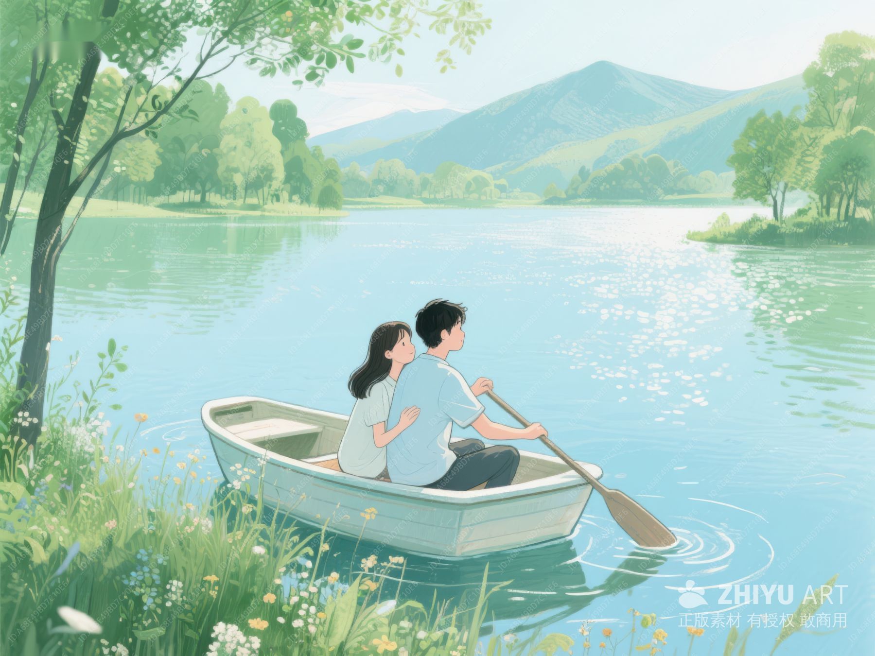 湖畔划船的浪漫情侣 282