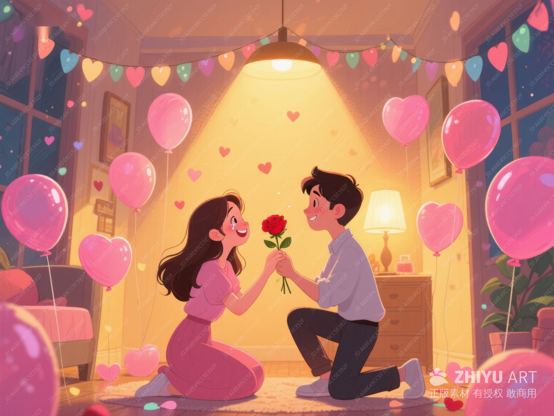 浪漫求婚:玫瑰与气球的温馨场景 388