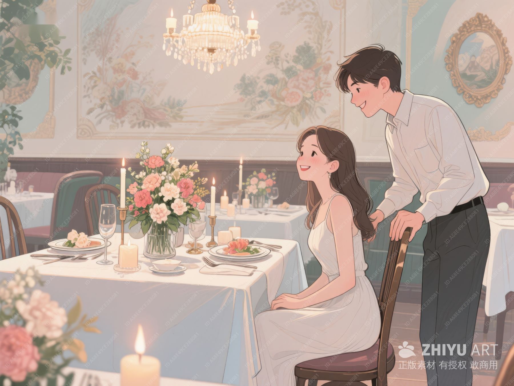 浪漫晚餐:情侣在餐厅共享温馨时光 439