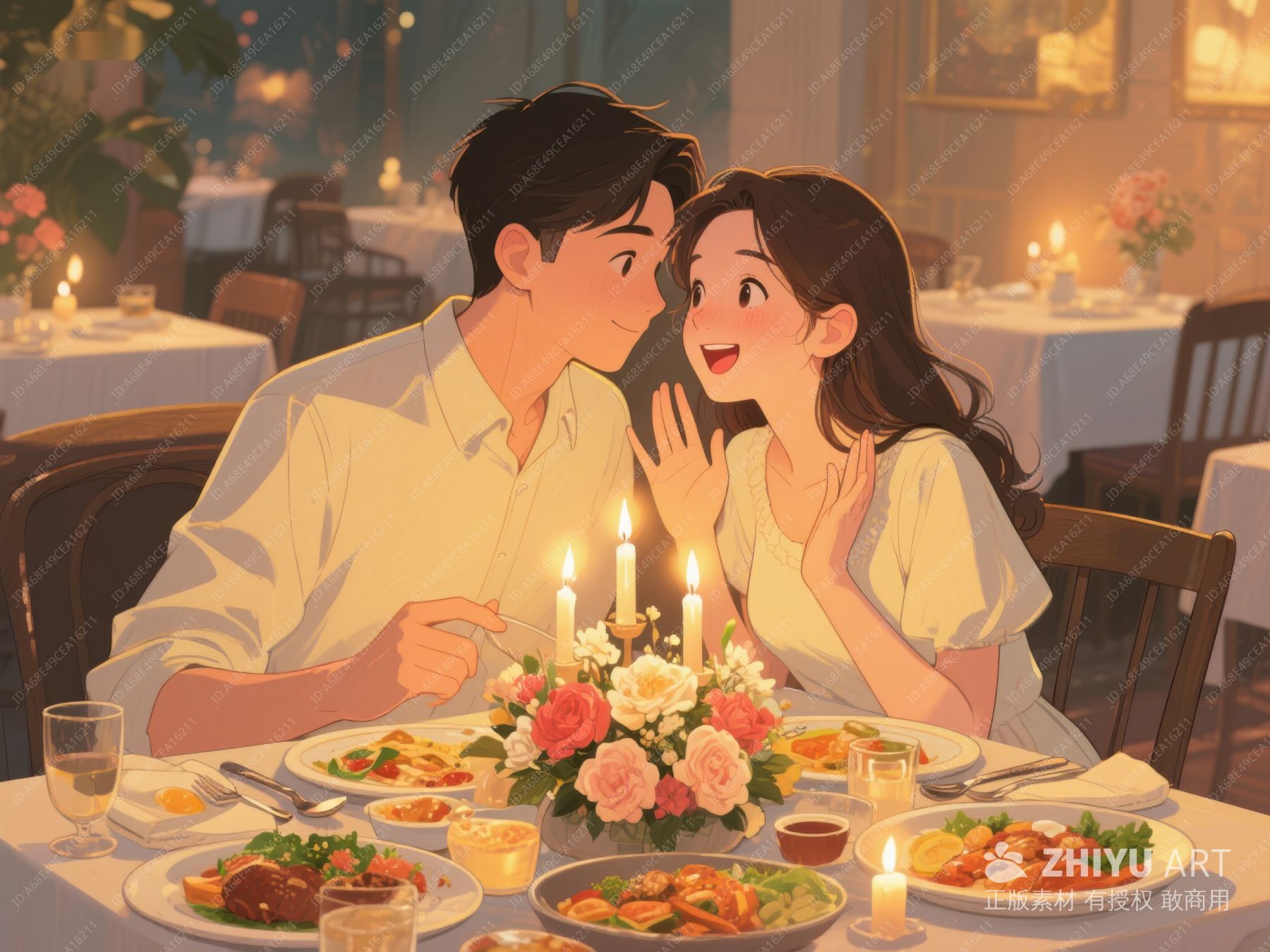 浪漫晚餐:情侣在烛光下共享美食 444