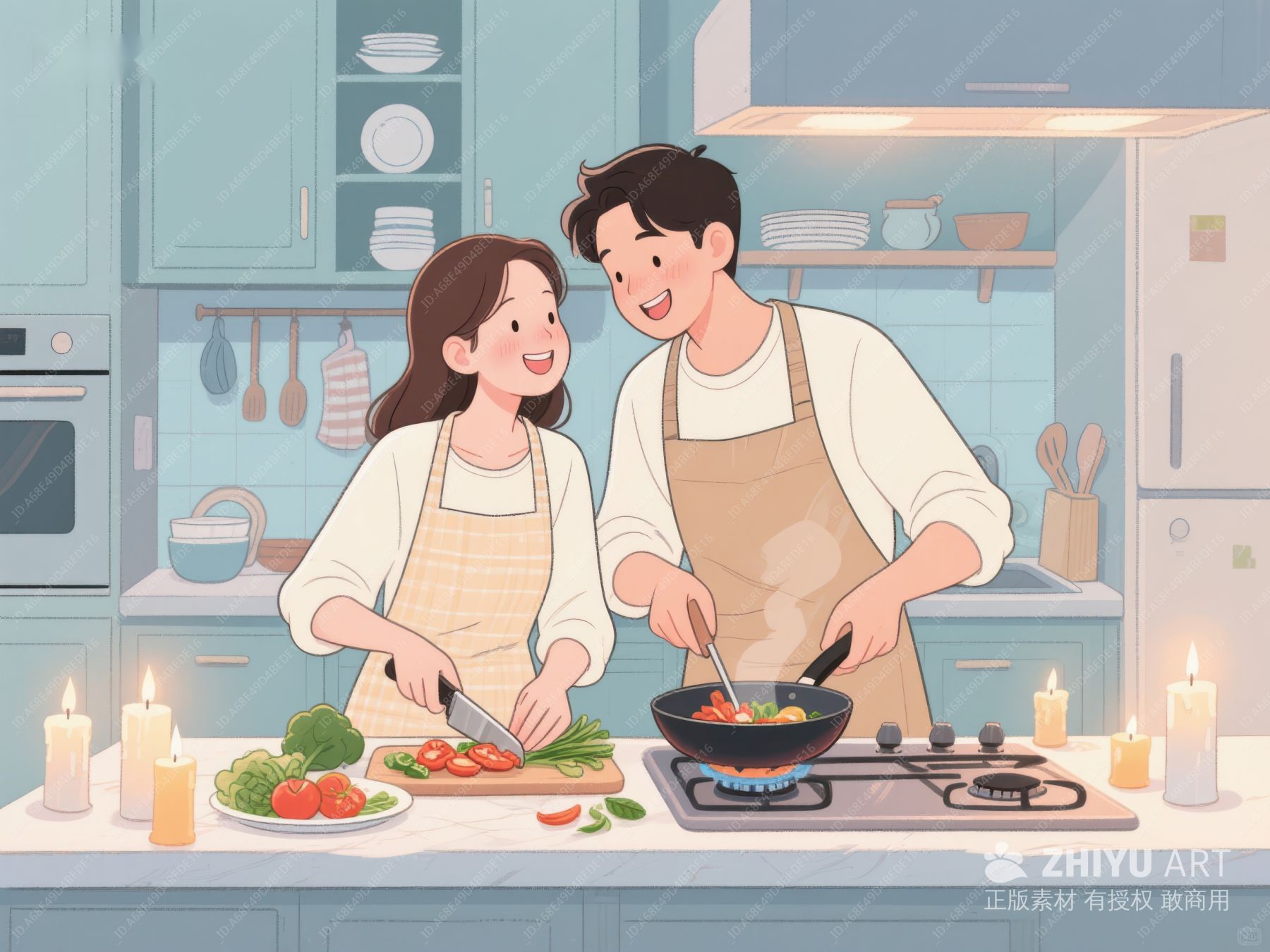 情侣厨房共烹饪温馨场景 509