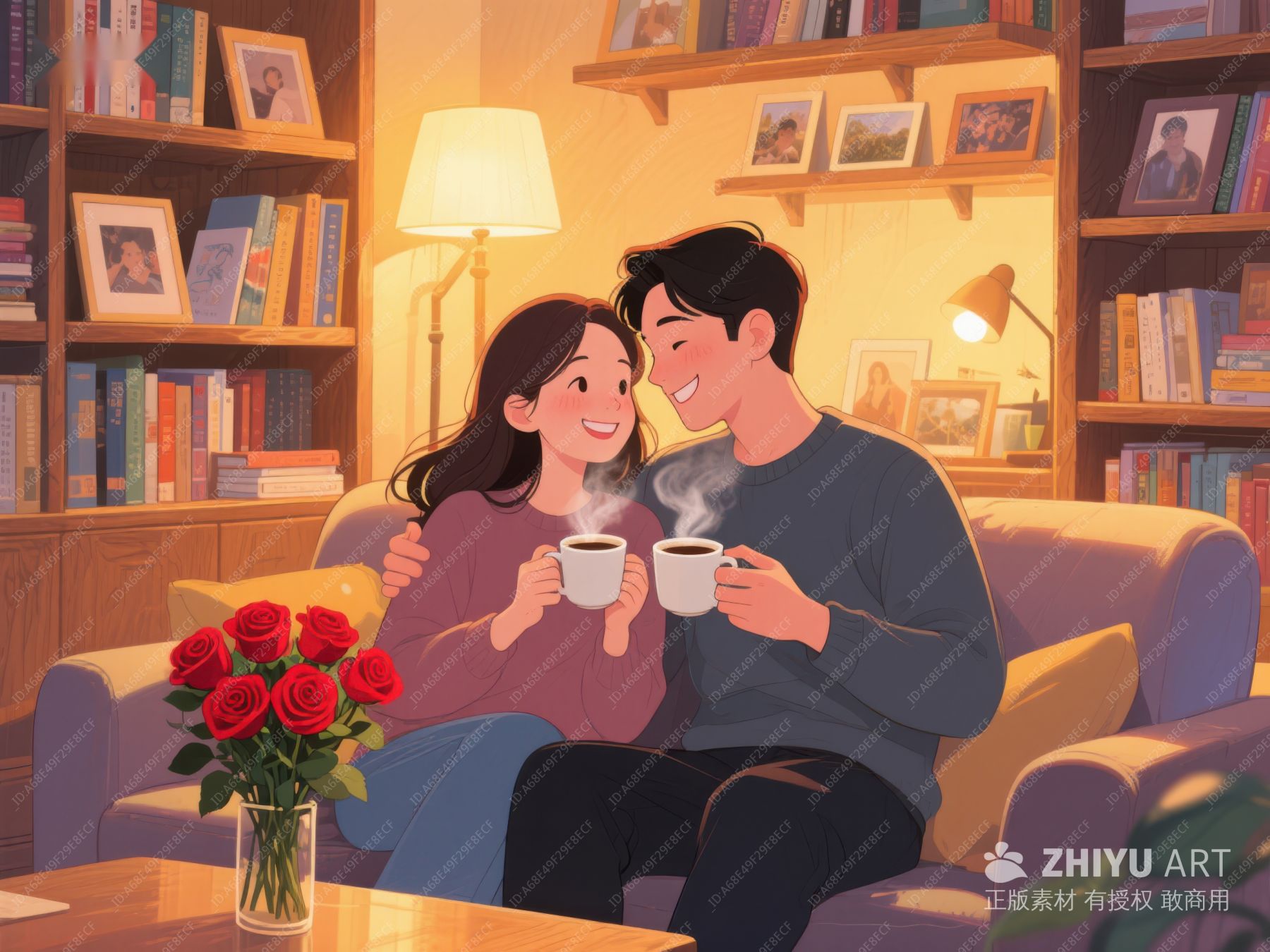温馨夜晚,情侣共饮热茶 826