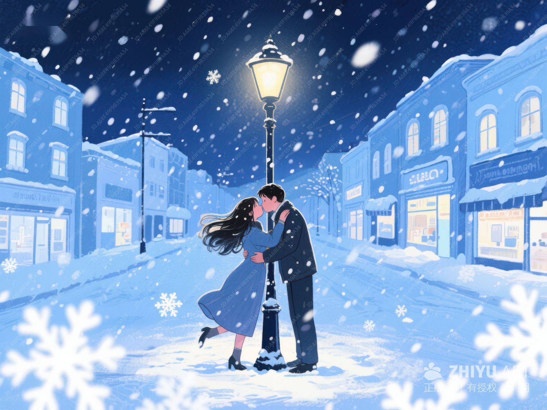 雪夜街灯下的浪漫拥吻 901
